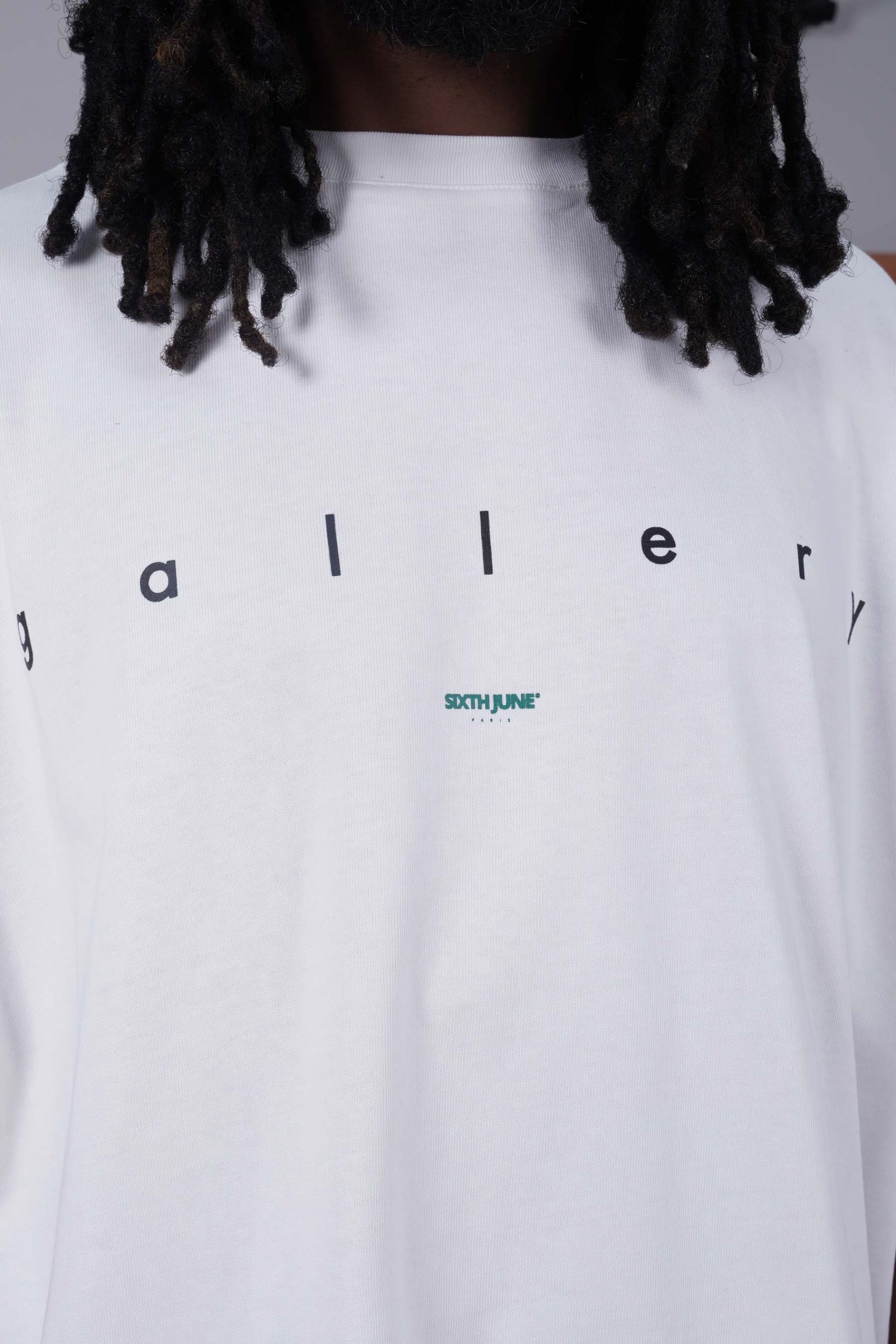 T-shirt à manches courtes pour femme de marque Sixth June. Imprimé à l’arrière dans un style gallerie d’art. Logo et inscription à l’avant, col rond. Coupe boxy.
