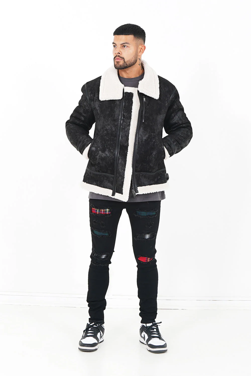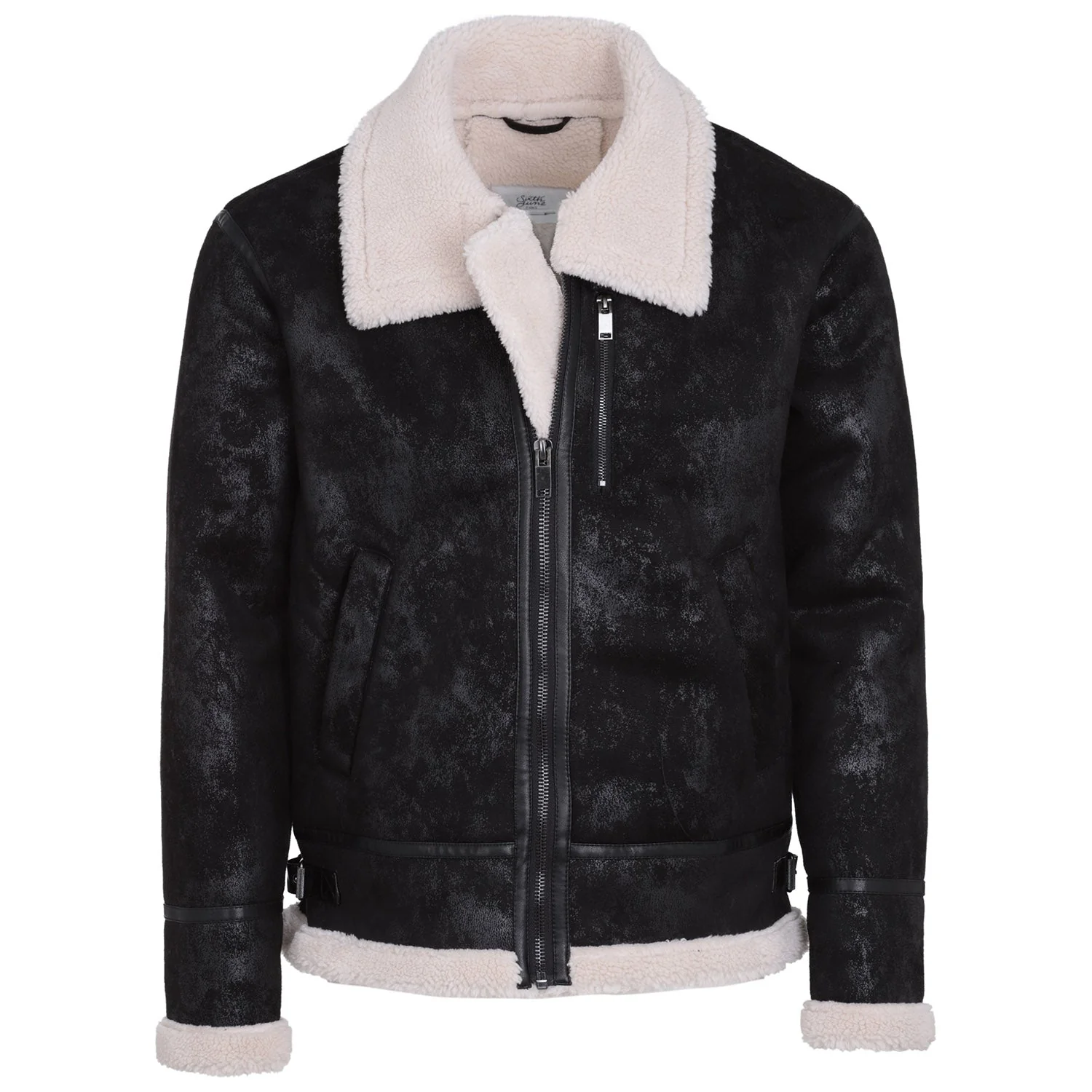 Veste pour homme de marque Sixth June. Style aviateur avec col à revers en sherpa, bande aux poignets et à la taille en sherpa. Détails avec bandes en simili cuir sur le buste et les manches, fermeture centrale à zip, poches latérales avant. Coupe classique, doublure (100% polyester).