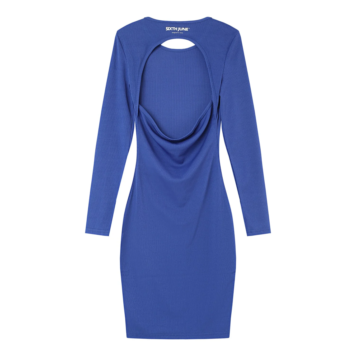 Robe à manches longues pour femme de marque Sixth June. Ouverture dans le haut du dos. Matière fine et légèrement côtelée,logo printé à l’arrière au niveau du col.
