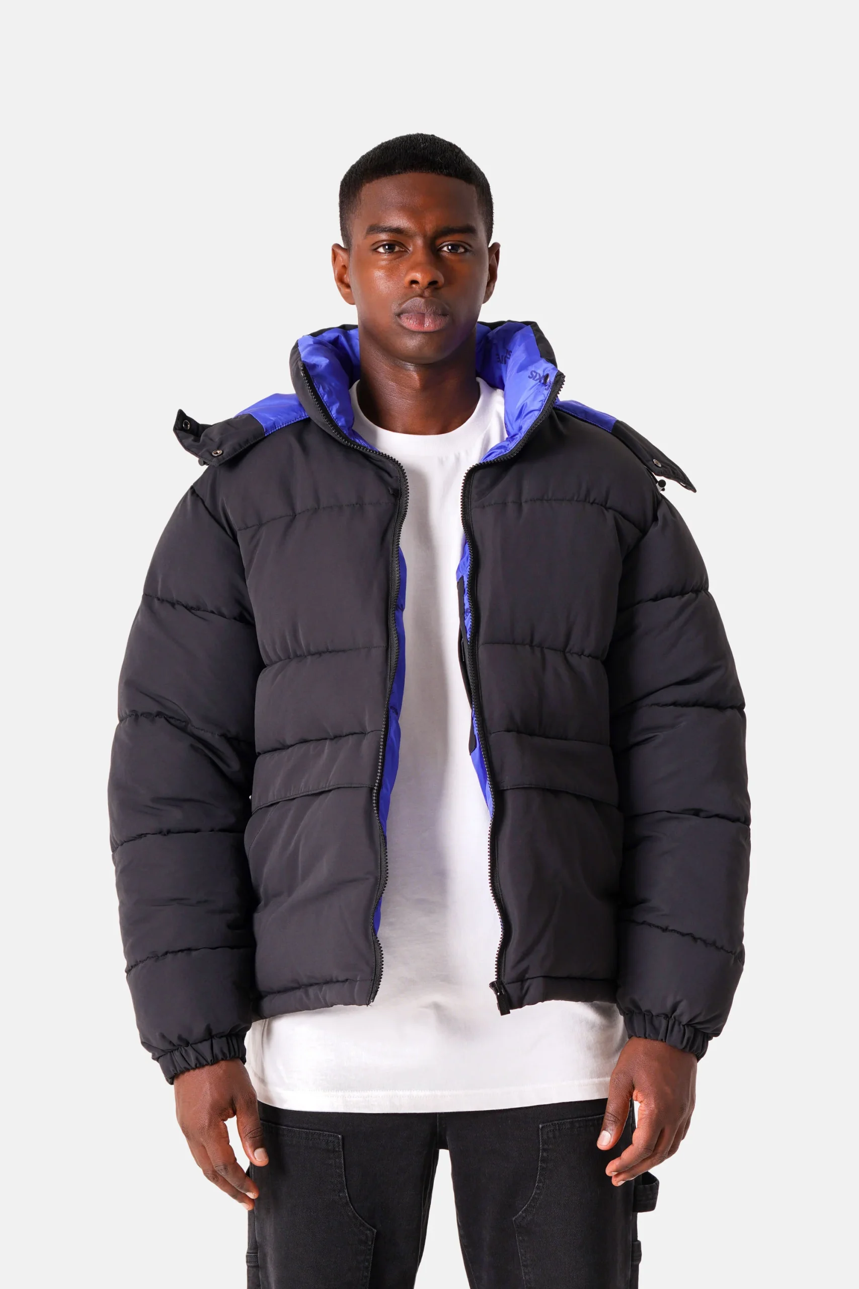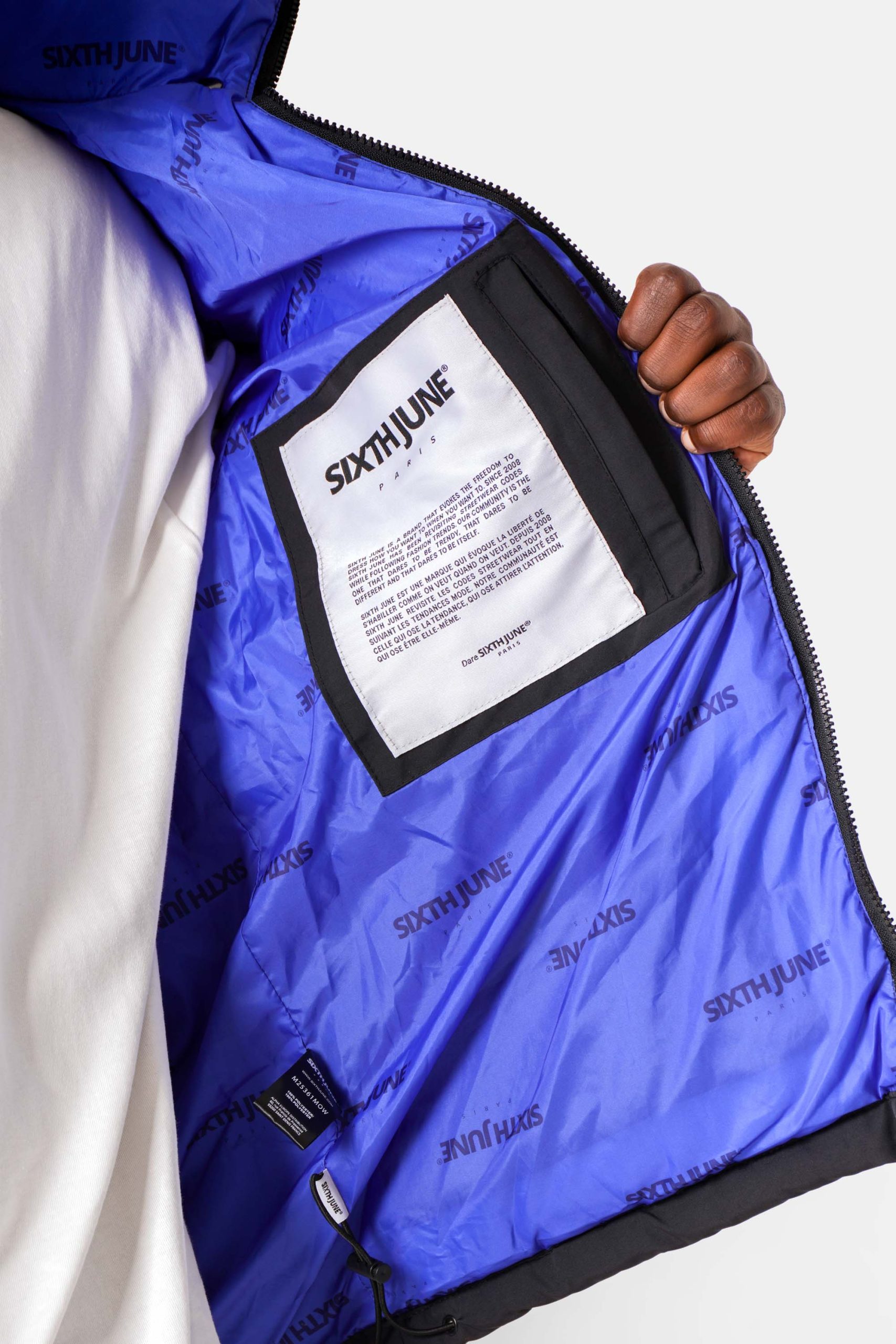 Doudoune pour homme de marque Sixth June. Intérieur bicolore avec logo imprimé et poche. Poches plaquées à l’avant avec rabats et fermeture à zip, capuche ajustable, élastiques au niveau des poignets.
