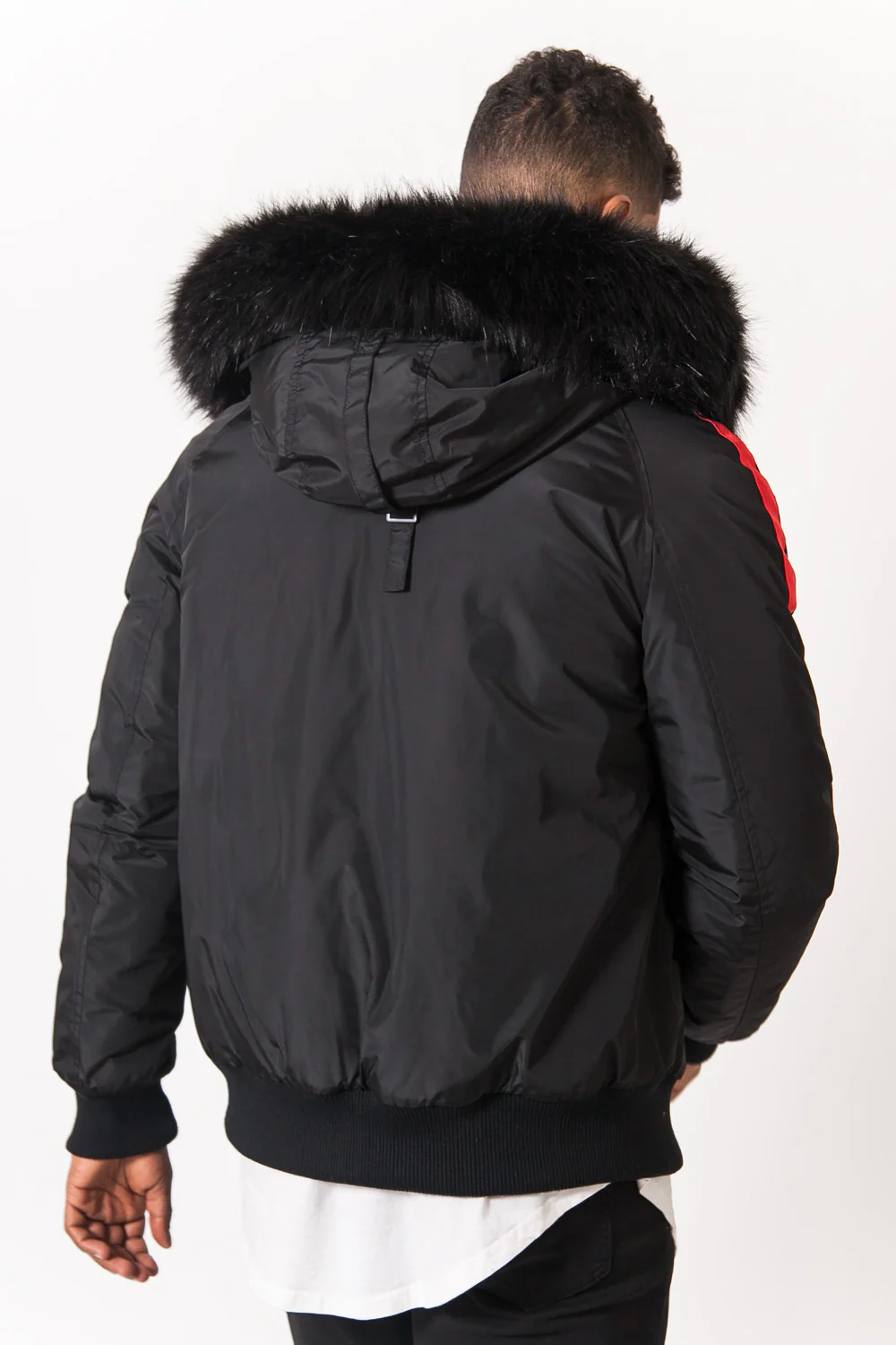 Blouson bandes fourrure noir rouge