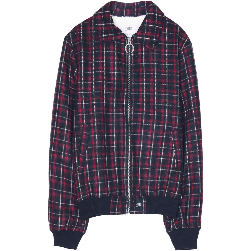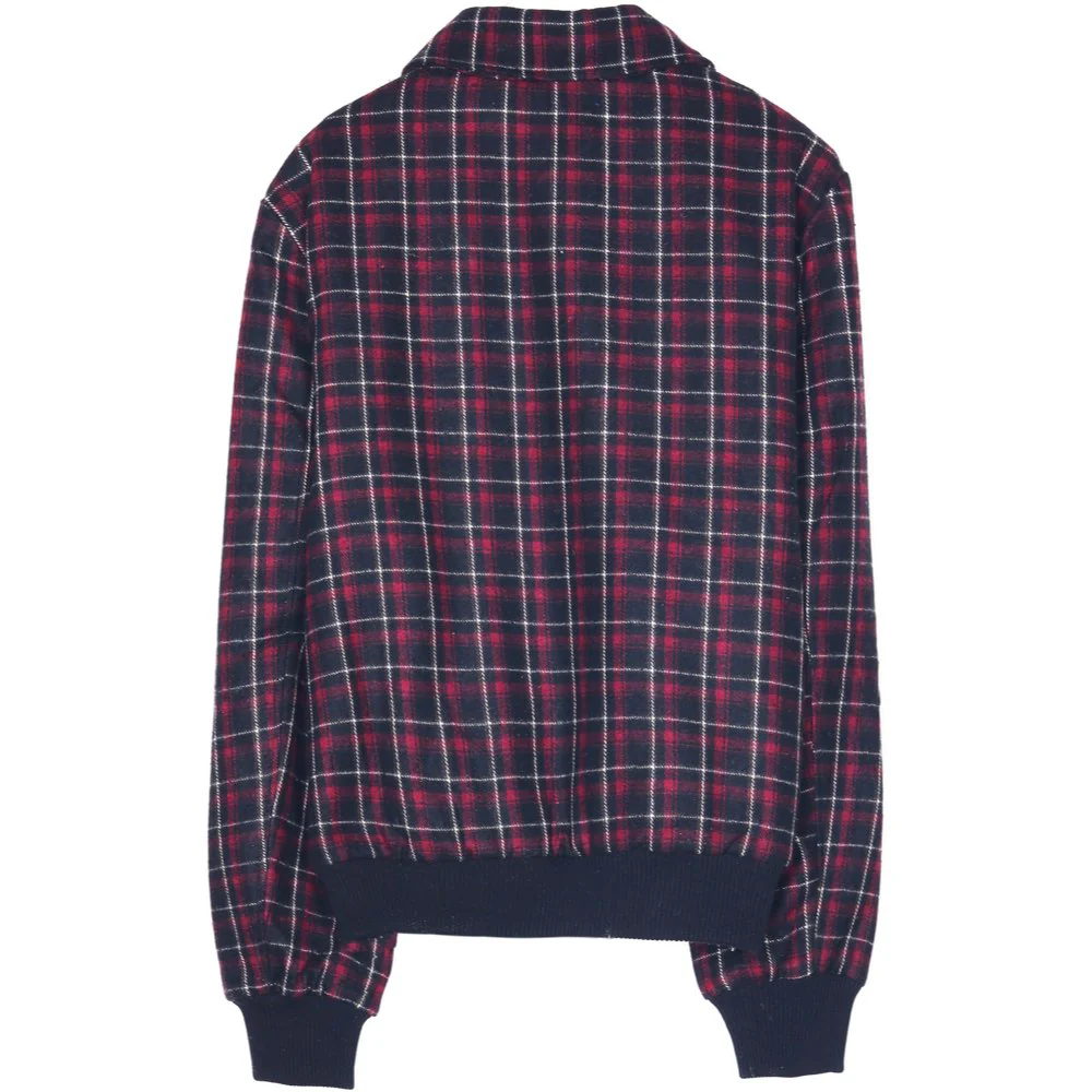Blouson laine tartan noir rouge