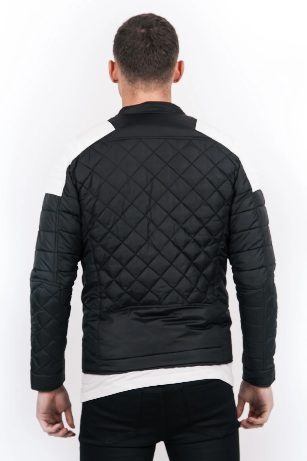 Blouson matelassé ajusté biker noir blanc