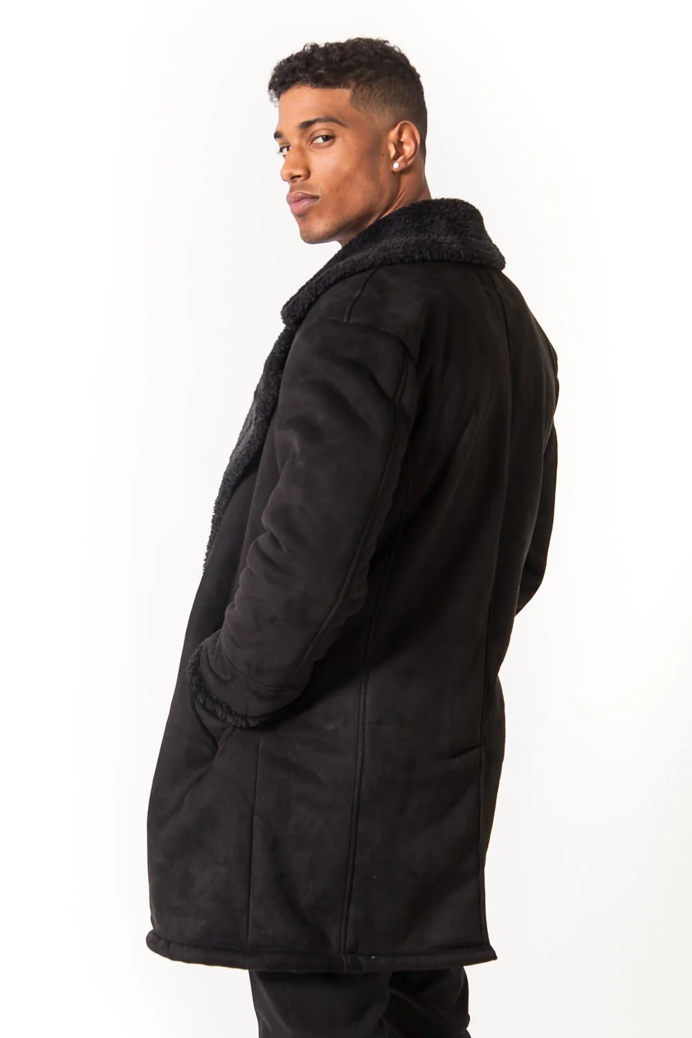 Caban croisé fourrure suede noir