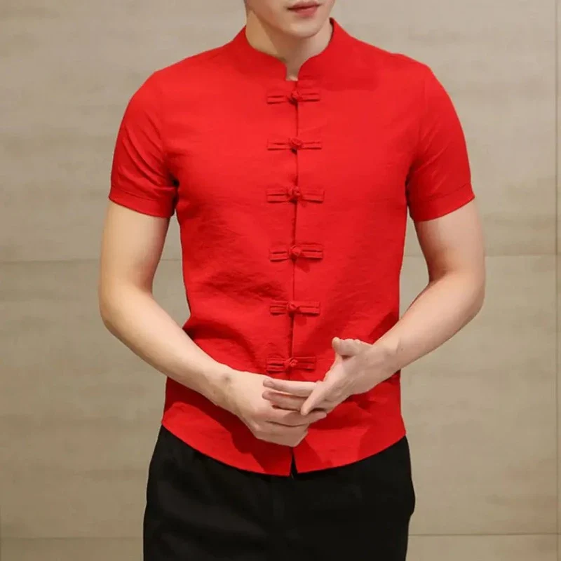Chemises Courtes Slim pour Hommes de Style Chinois