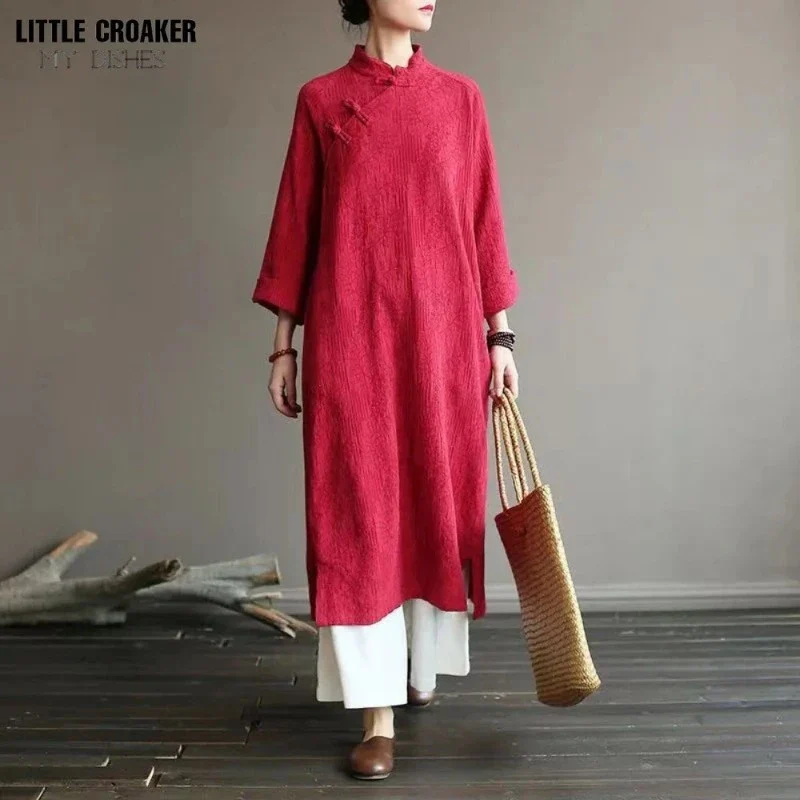 La Cheongsam Robe Automne Améliorée est conçue pour faire tourner les têtes à chaque coin de rue. Que ce soit pour un déjeuner entre amis, un dîner romantique, ou une réunion professionnelle, cette robe est adaptable à toutes les circonstances. Son design élégant se marie parfaitement avec des accessoires variés, tels que des bijoux délicats ou des sacs à main sophistiqués, permettant de personnaliser le look selon l’ambiance du moment.