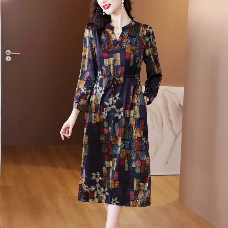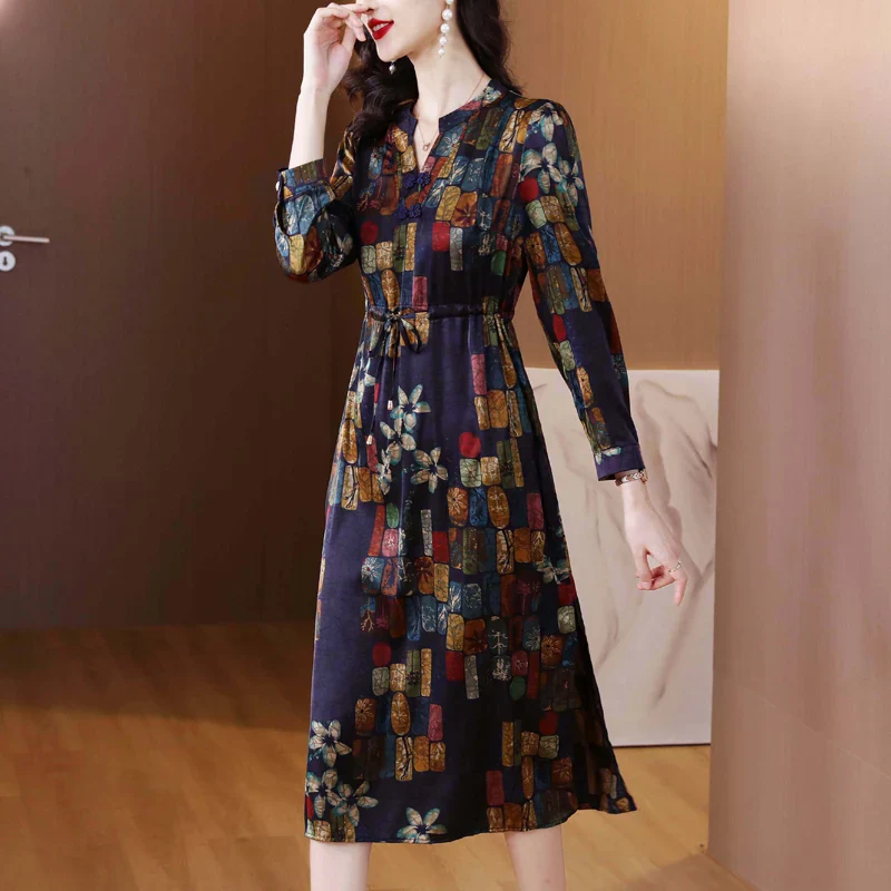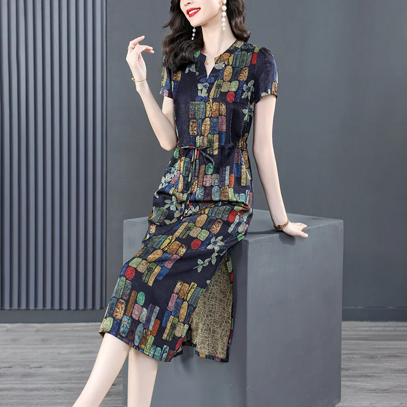 Posséder la Cheongsam Robe Soie Col V Lacets, c’est aussi entrer dans un cercle exclusif de mode féminine où l’élégance est la clé. Cette robe est plus qu’un simple vêtement ; c’est un symbole de raffinement et de style. Son motif imprimé fait écho à des inspirations artistiques et se marie harmonieusement avec différentes palettes de couleur.