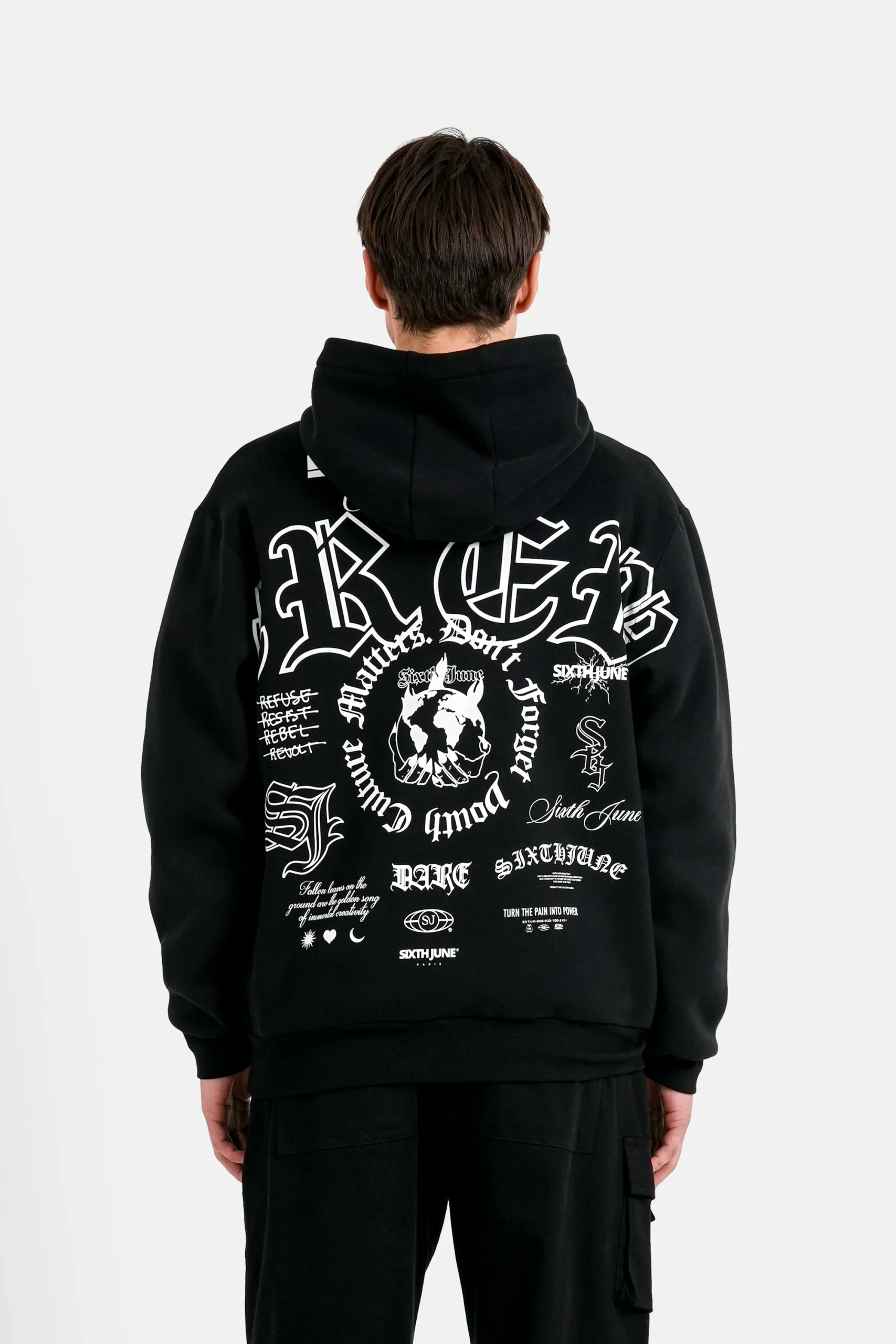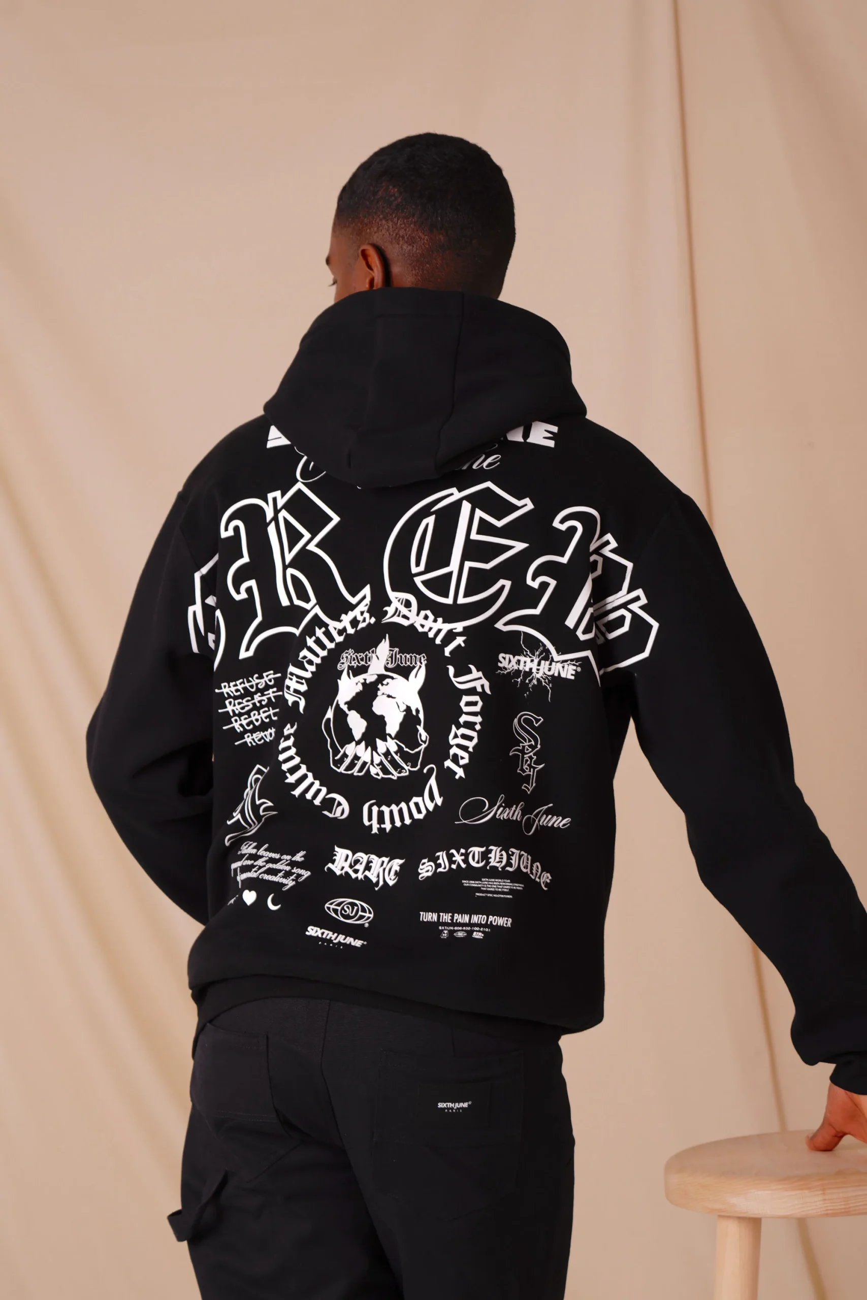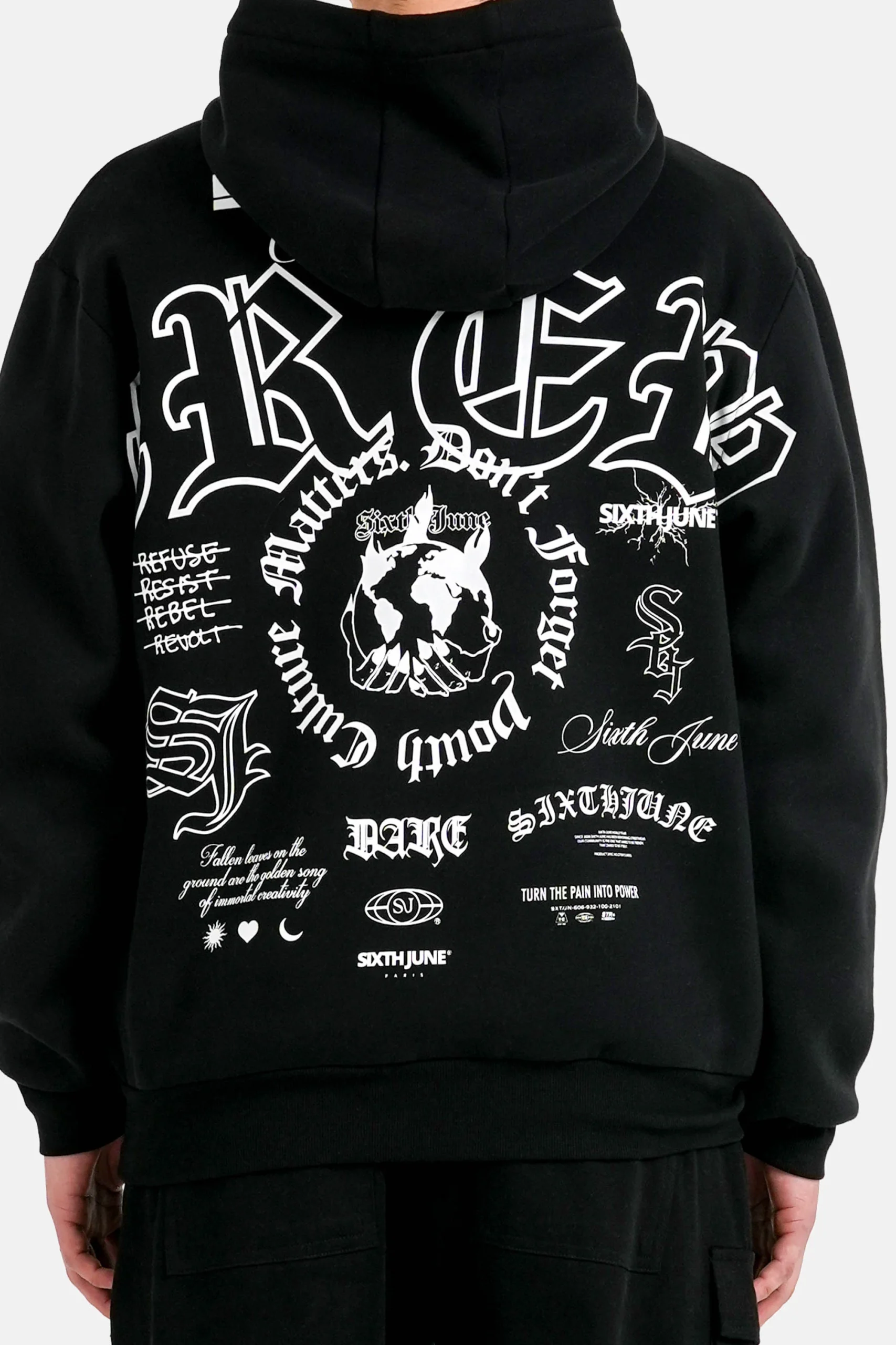 Sweatshirt pour homme de marque Sixth June. Imprimé à l’arrière avec plusieurs motifs. Poche kangourou, bords-côtes aux poignets et à la base.