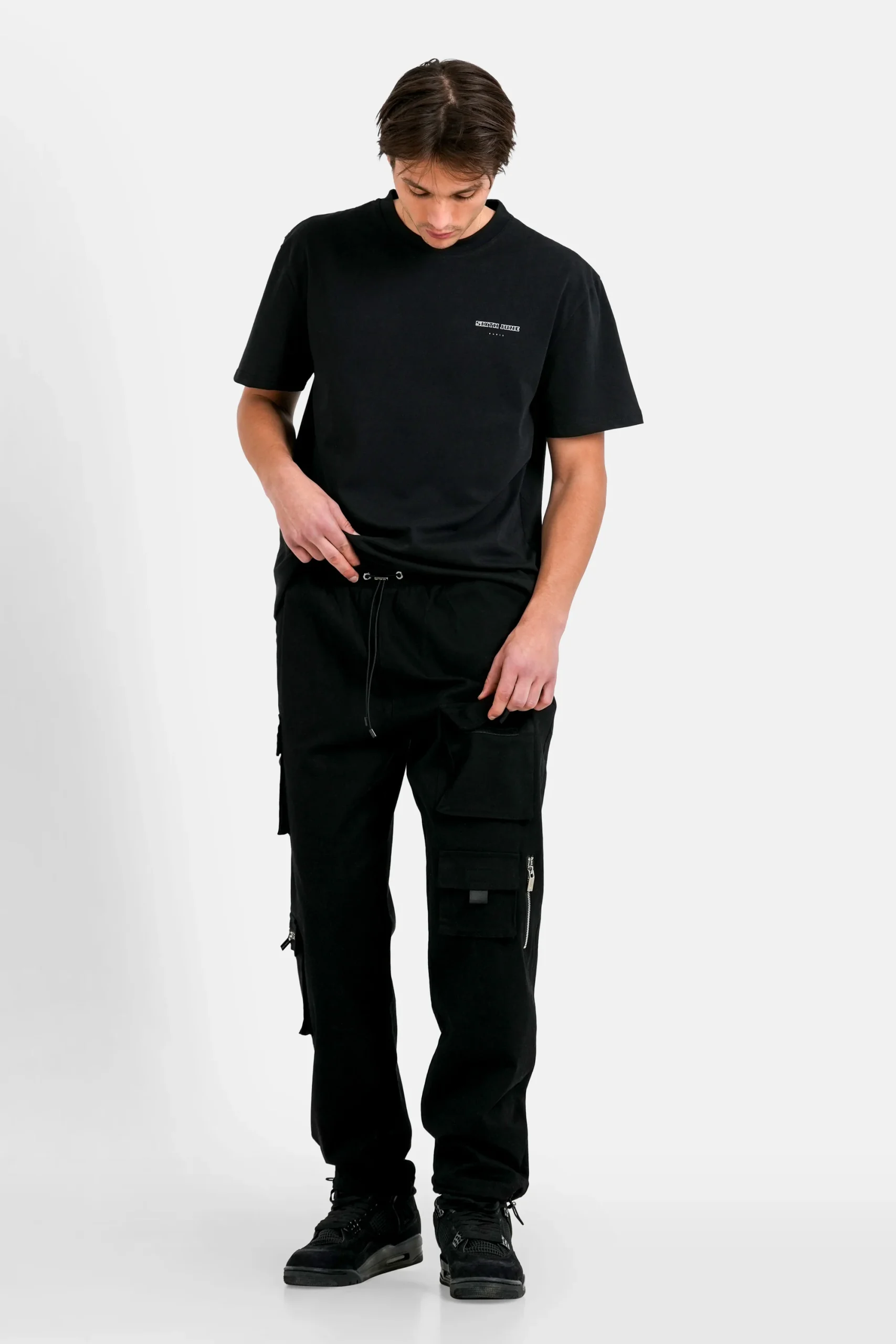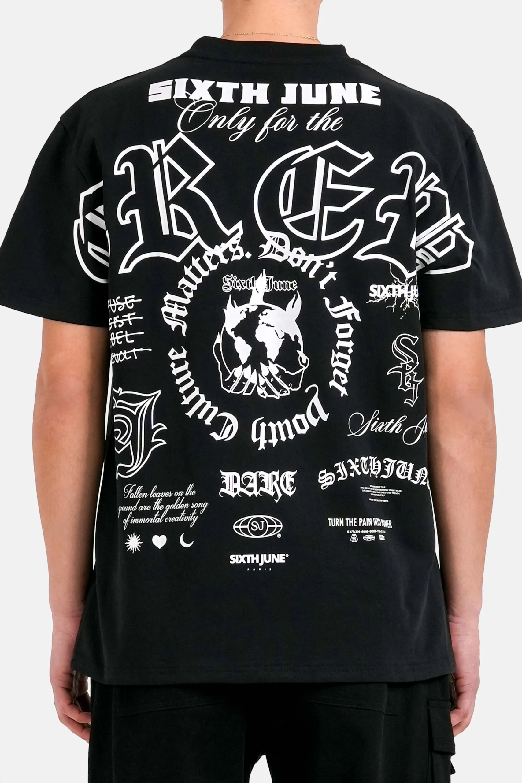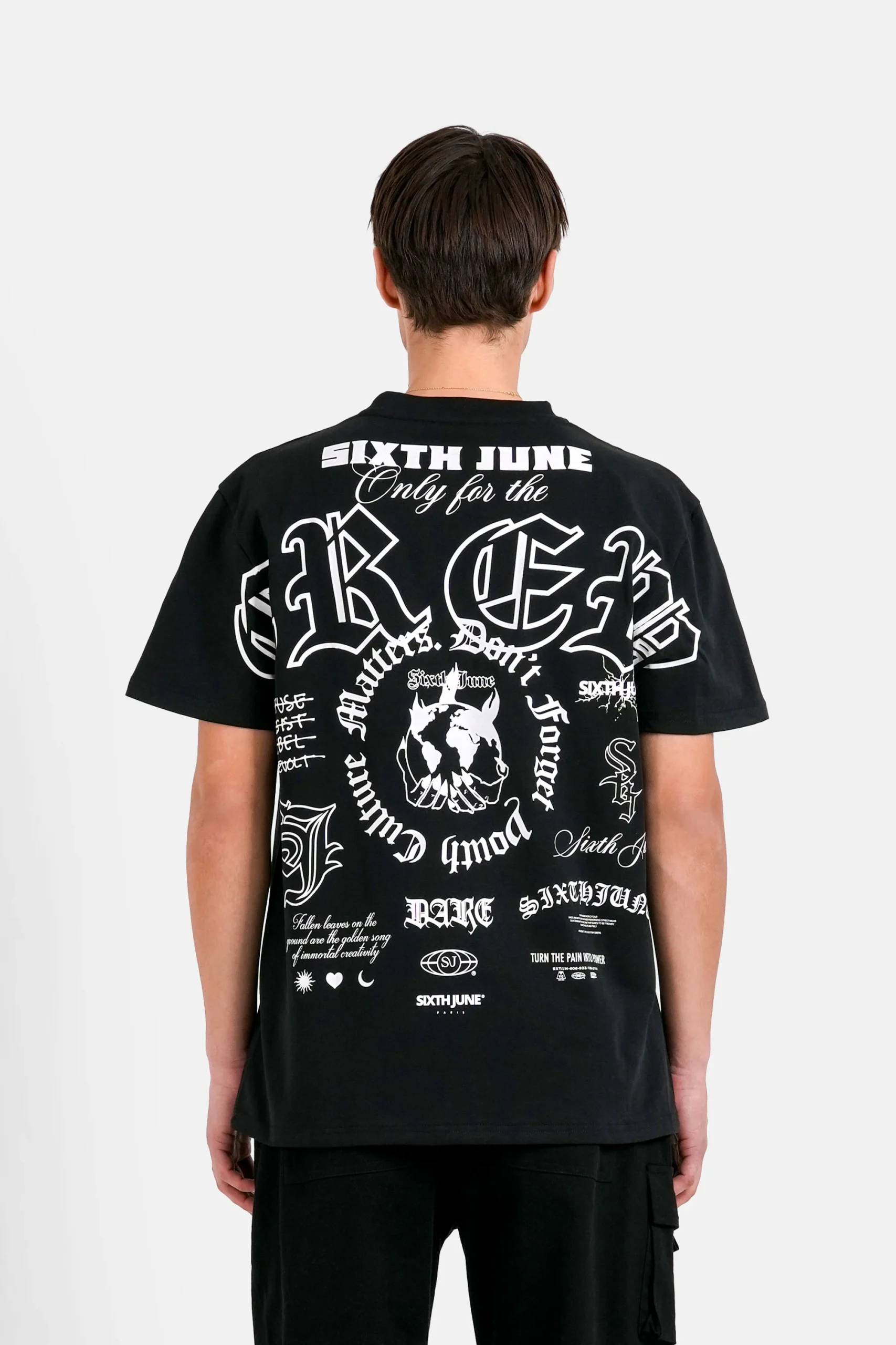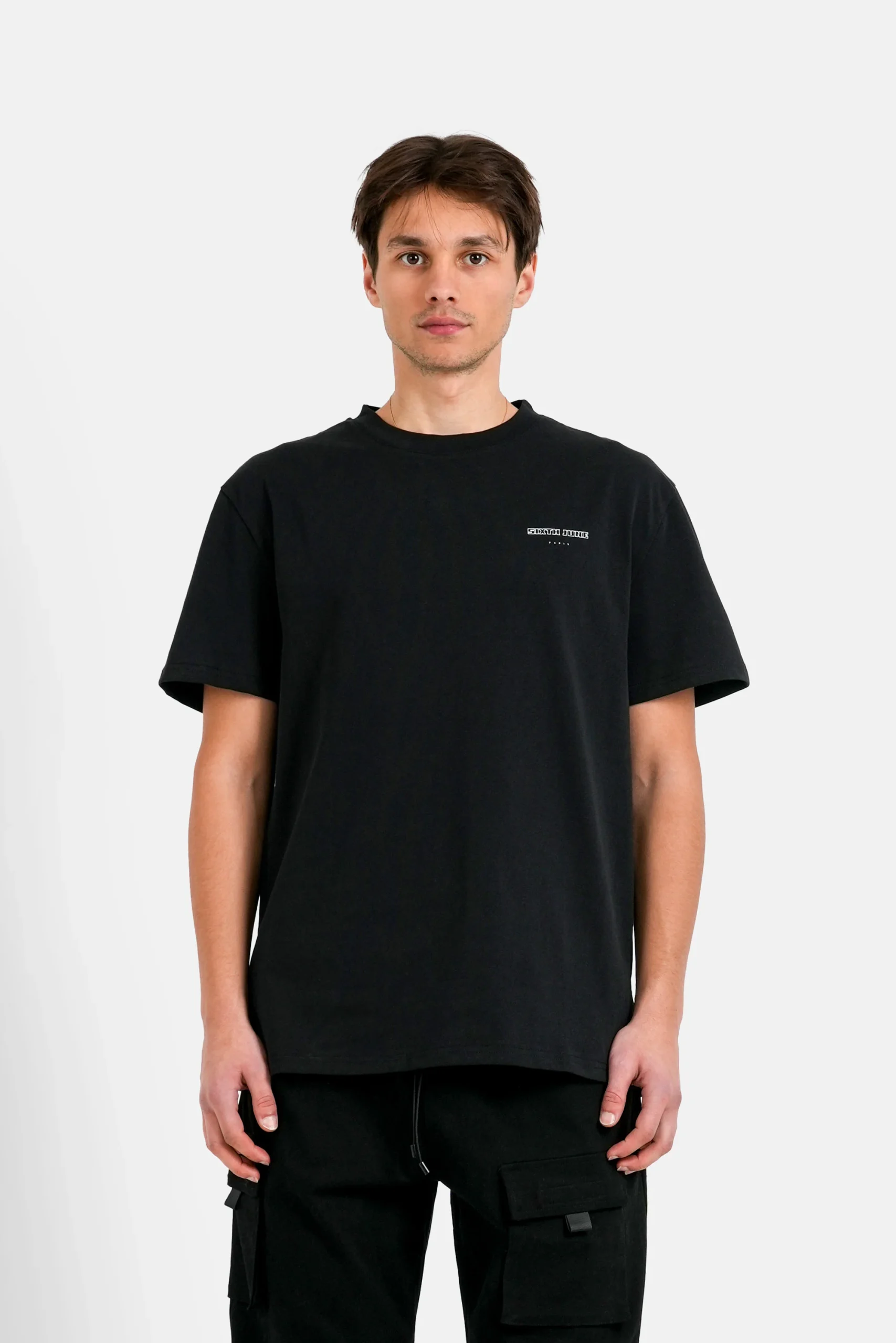 Logo SIXTH JUNE PARIS en petit au niveau de la poitrine.