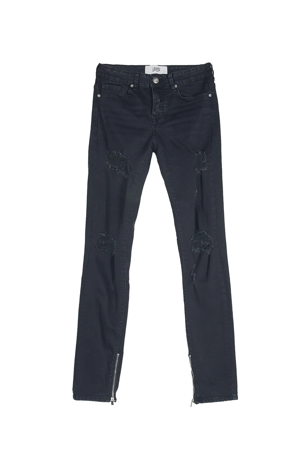 Denim Sixth June Men black. Ankle zippers. Destroyed effect on the front. Slim cut.