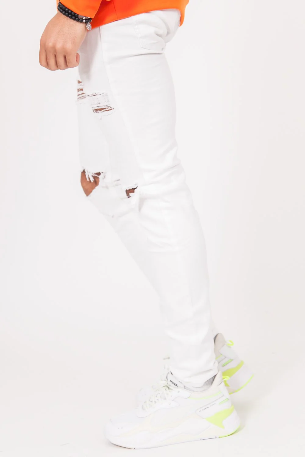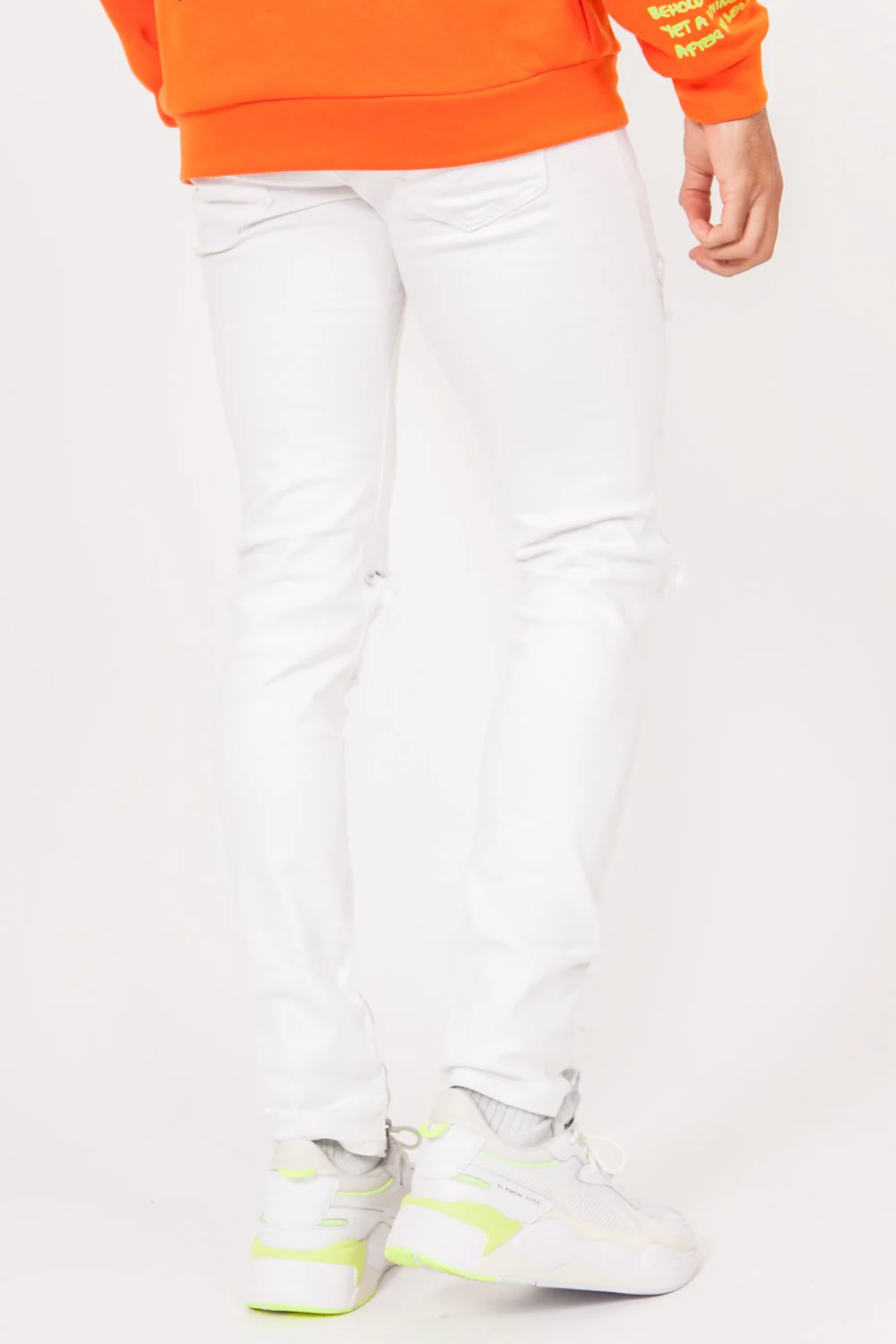 Denim Sixth June Men white. Ankle zippers. Destroyed effect on the front. Slim cut.