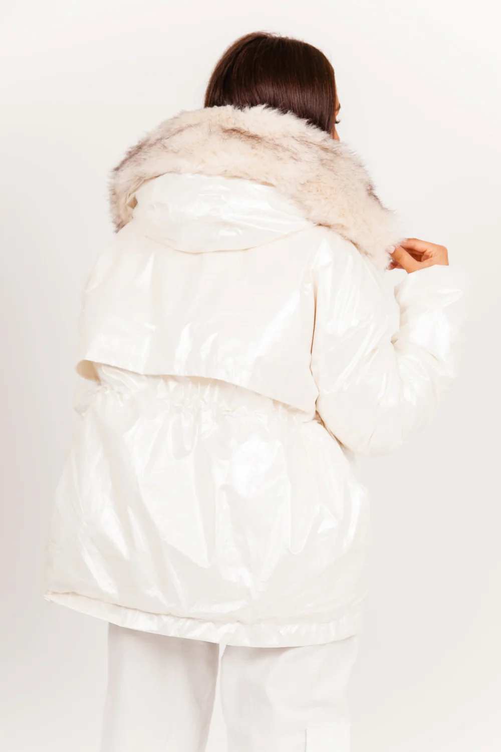 Doudoune pour femme de marque Sixth June. Effet matelassé et rembourré. Capuche (non amovible) avec fausse fourrure amovible. Style oversize avec cordons de serrage à la taille. Fausses poches avec détails à zip sur la poitrine, fermeture centrale à zip. Elastique au niveau des poignets, poche intérieure. Coupe large. Modèle blanc nacré.