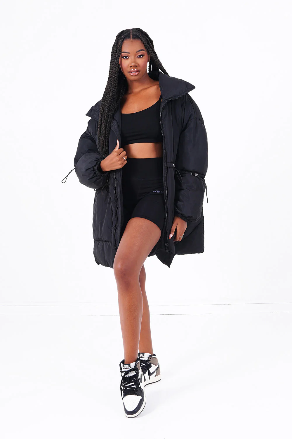 Doudoune pour femme de marque Sixth June. Effet matelassé, col montant et haut, élastique de serrage à la taille et au niveau des avant-bras, élastique aux poignets, fermeture centrale à zip. Deux poches latérales au niveau de la taille, deux poches latérales au niveau de la poitrine avec fermeture à zip, logo sur patch en […]