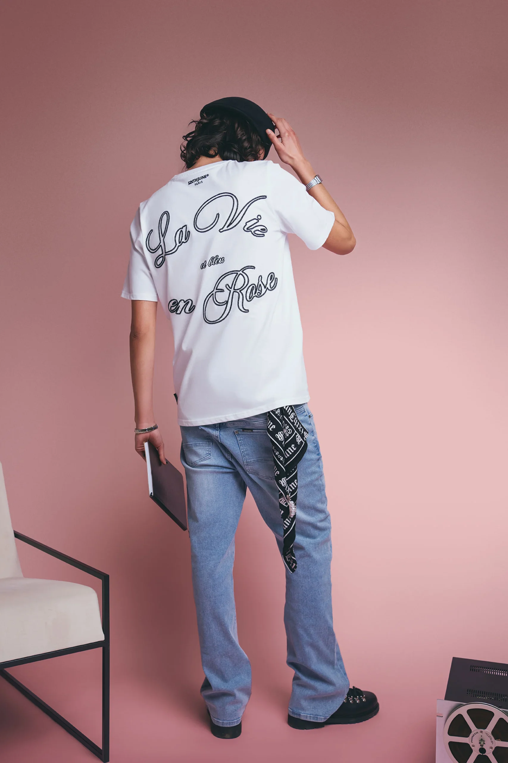 T-shirt pour homme de marque Sixth June. Broderie à l’arrière : La vie en rose et bleu. Logo brodé à l’avant sous la poitrine.