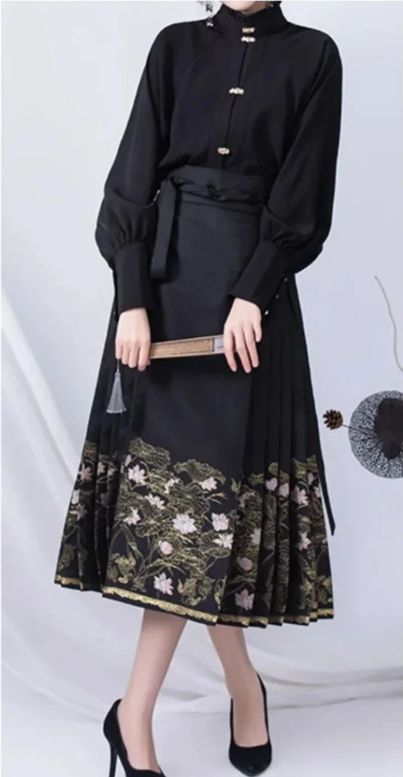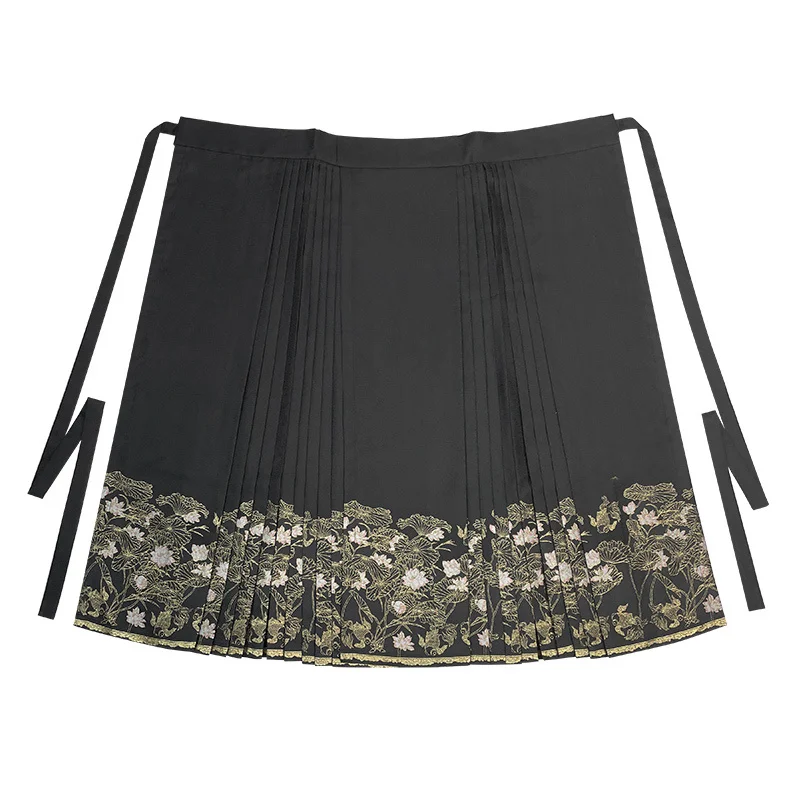 Les détails de cette jupe sont soigneusement pensés pour magnifier le style traditionnel. Les motifs délicats, typiques des costumes Hanfu, ajoutent une touche de sophistication. Cette jupe ne se contente pas de refléter un style vestimentaire, mais elle raconte également une histoire, celle des magnifiques costumes d’autrefois qui ont traversé les âges.