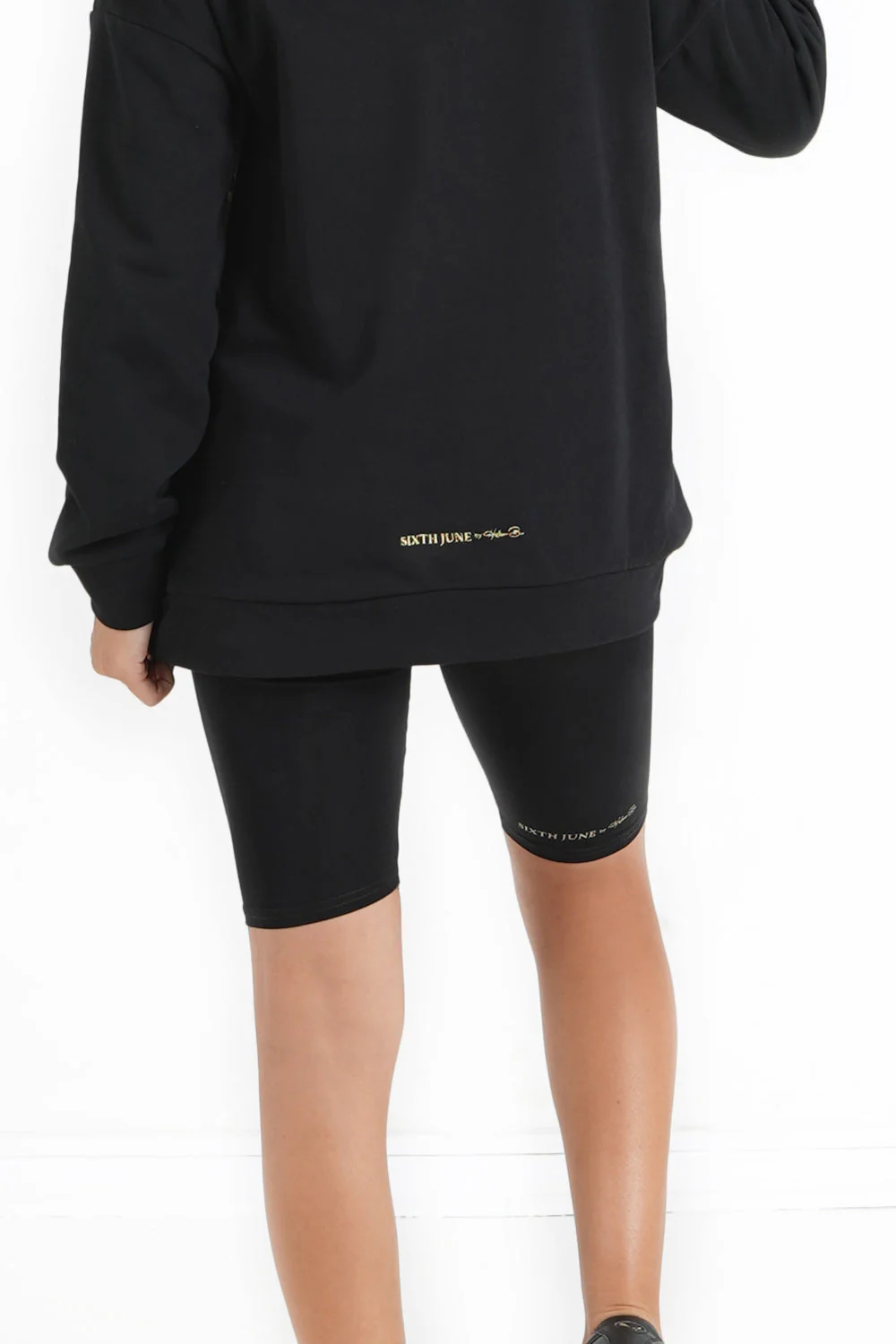 Cycliste pour femme de marque Sixth June en collaboration avec Helena BU. Signature HB brodée sur la jambe gauche et logo de la marque imprimé à l’arrière de la cuisse droite. Taille élastique. Coupe moulante façon legging, longueur midi. Composition: coton (95%) – élasthanne (5%). Imprimé: oui.