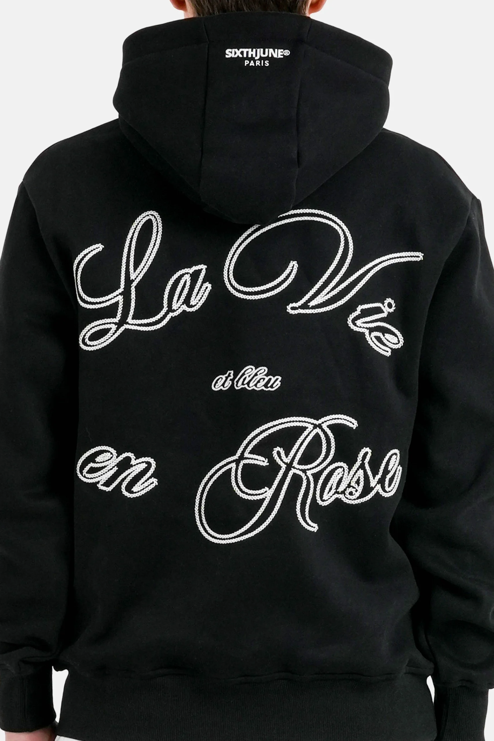 Sweatshirt pour homme de marque Sixth June. Broderie à l’arrière : La vie en rose et bleu. Logo brodé à l’avant sous la poitrine et sur la capuche.