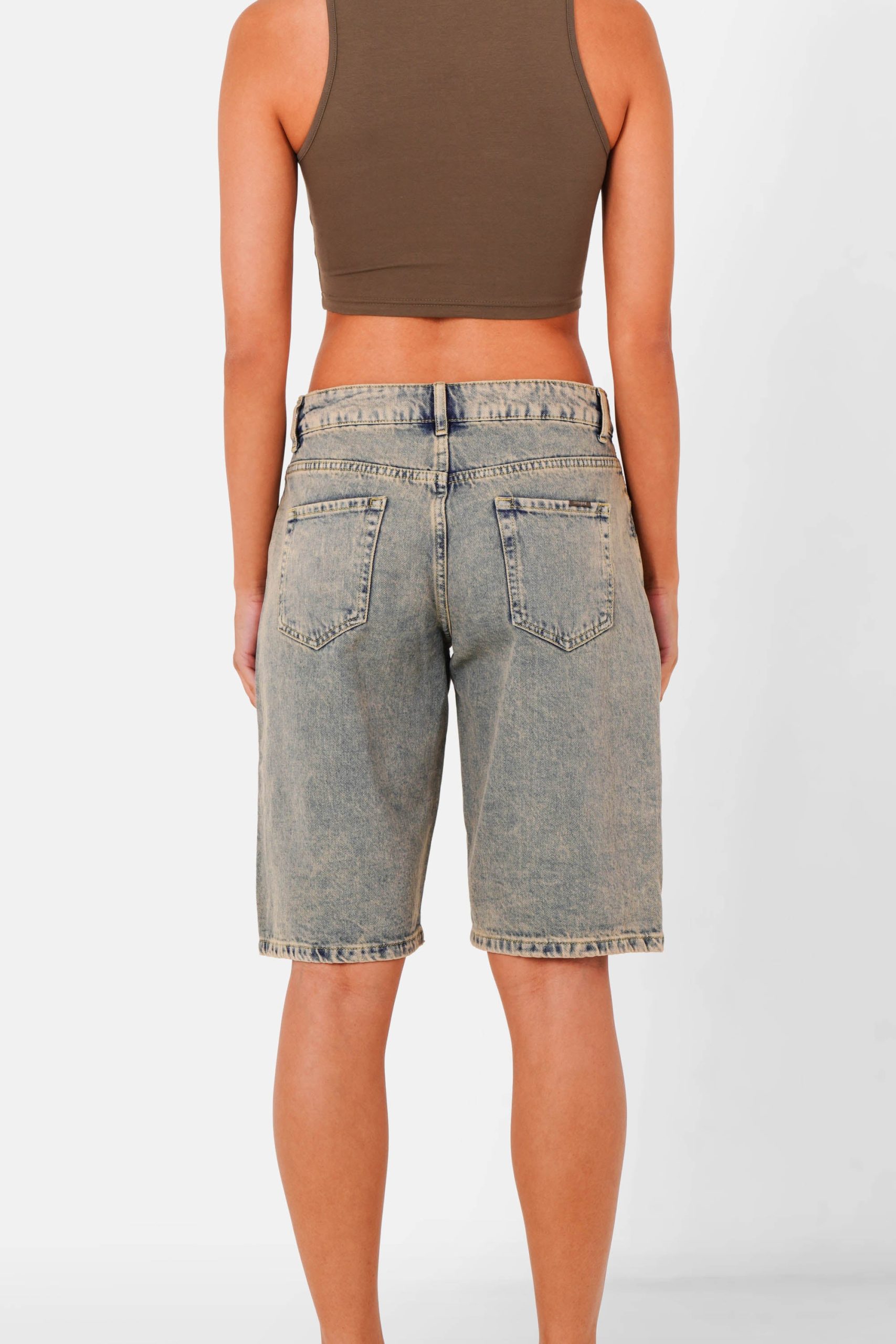 Short pour femme de marque Sixth June. Effet délavé. Fermeture à bouton et à zip, poches à l’avant et à l’arrière.