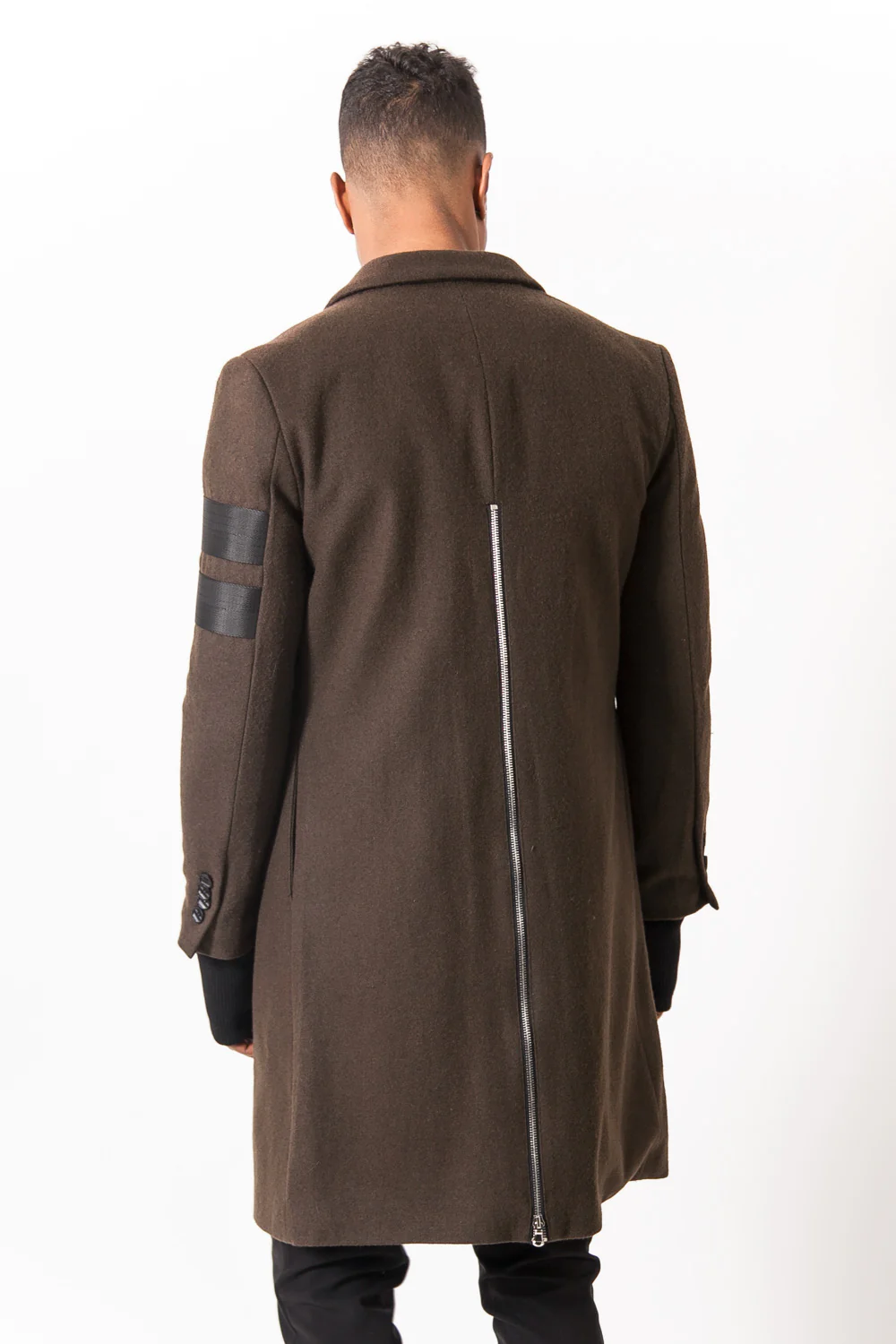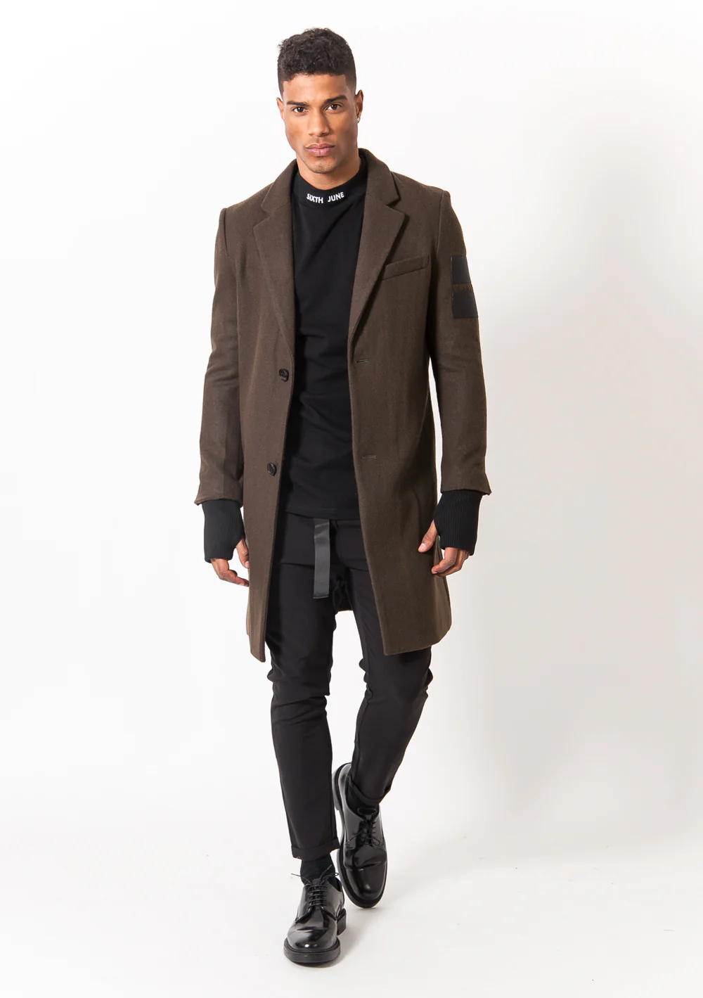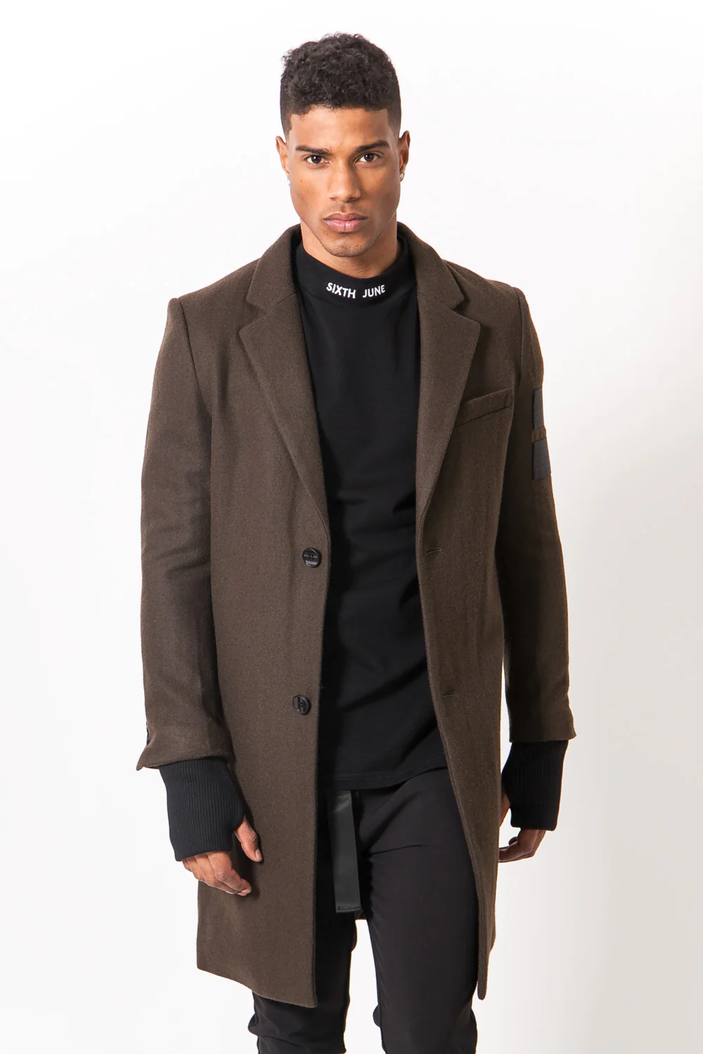 Manteau mi-long kaki Sixth June Homme. Une fausse poche pochette sur la poitrine. Deux bandes noir sur l’avant-bras gauche. Doubles manches côtelées noires avec trous pour le pouce. Poche intérieure.