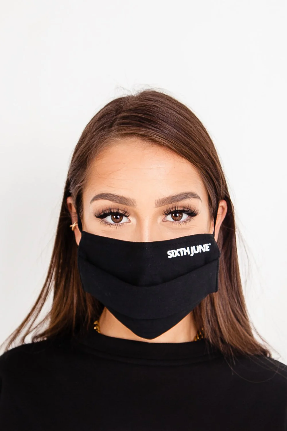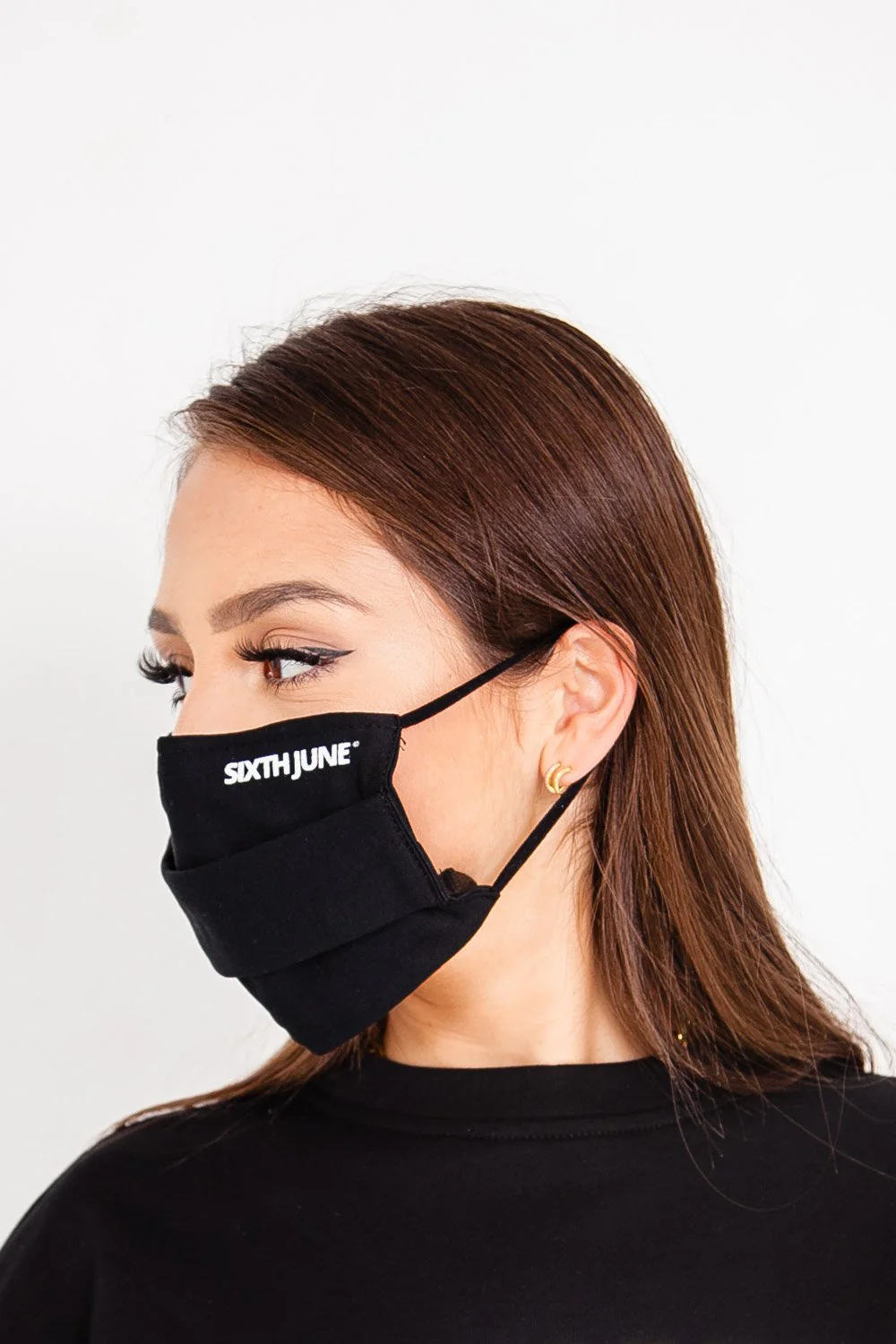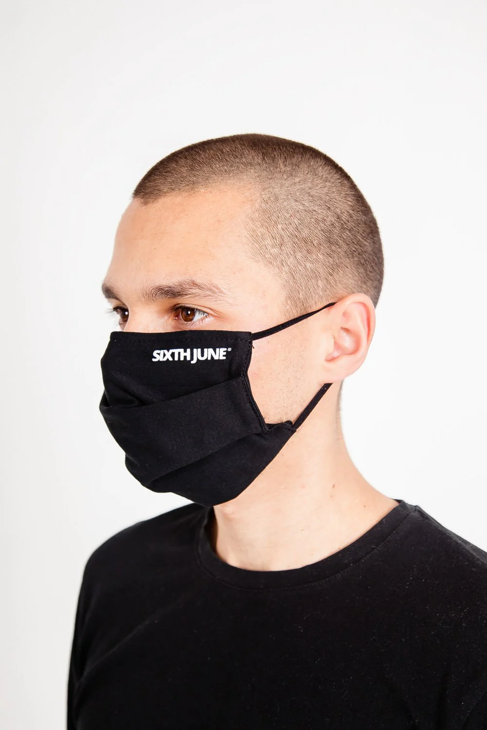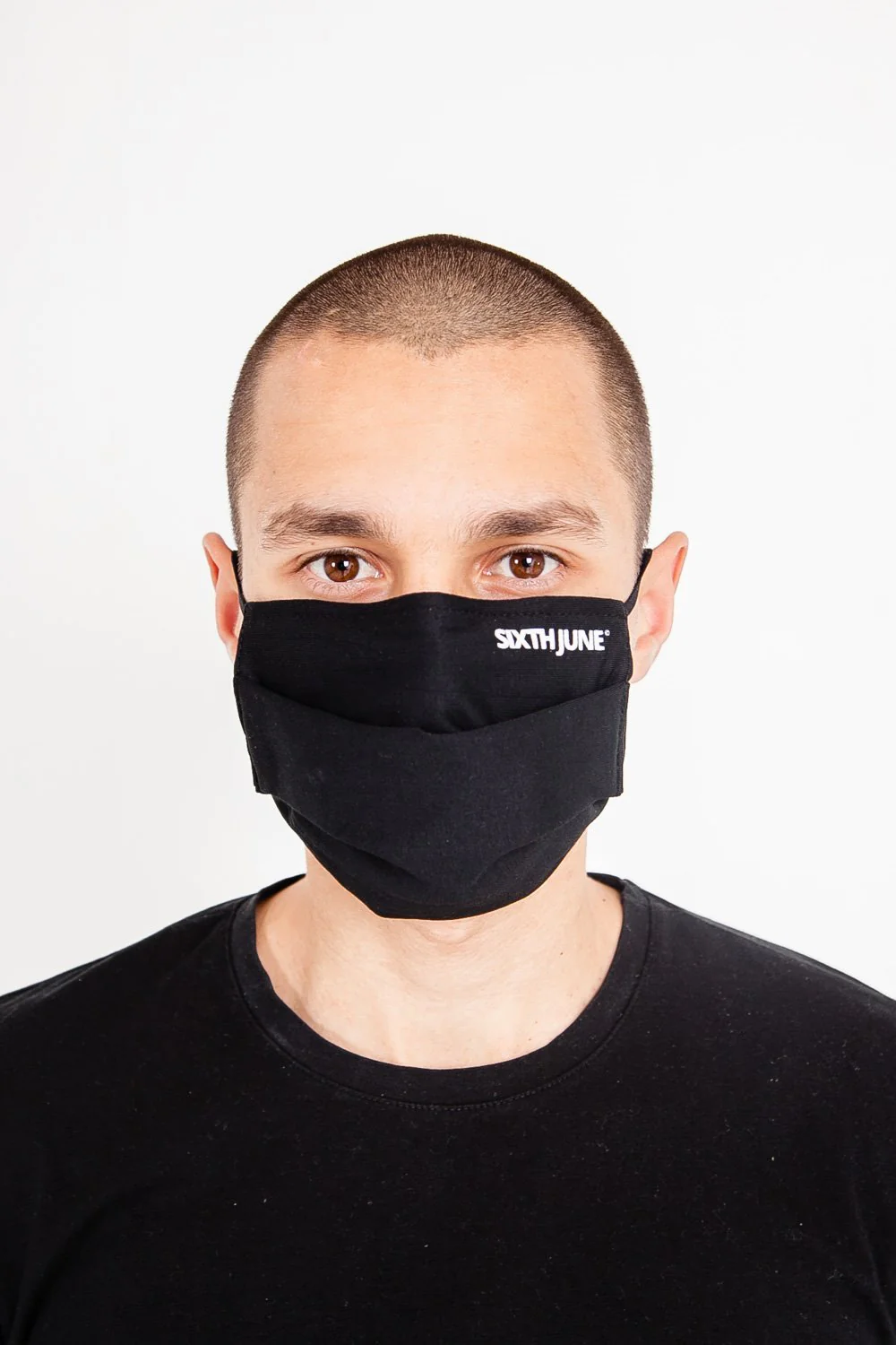 Masque mixte pour adultes. Inscription SIXTH JUNE sur le côté gauche. Accessoire de mode, il ne s’agit ni d’un dispositif médical au sens du Règlement UE/2017/745 (masques chirurgicaux), ni d’un équipement de protection individuelle au sens du Règlement UE/2016/425 (masques filtrants de type FFP2). Coupe classique, barrette nasale. Modèle noir.