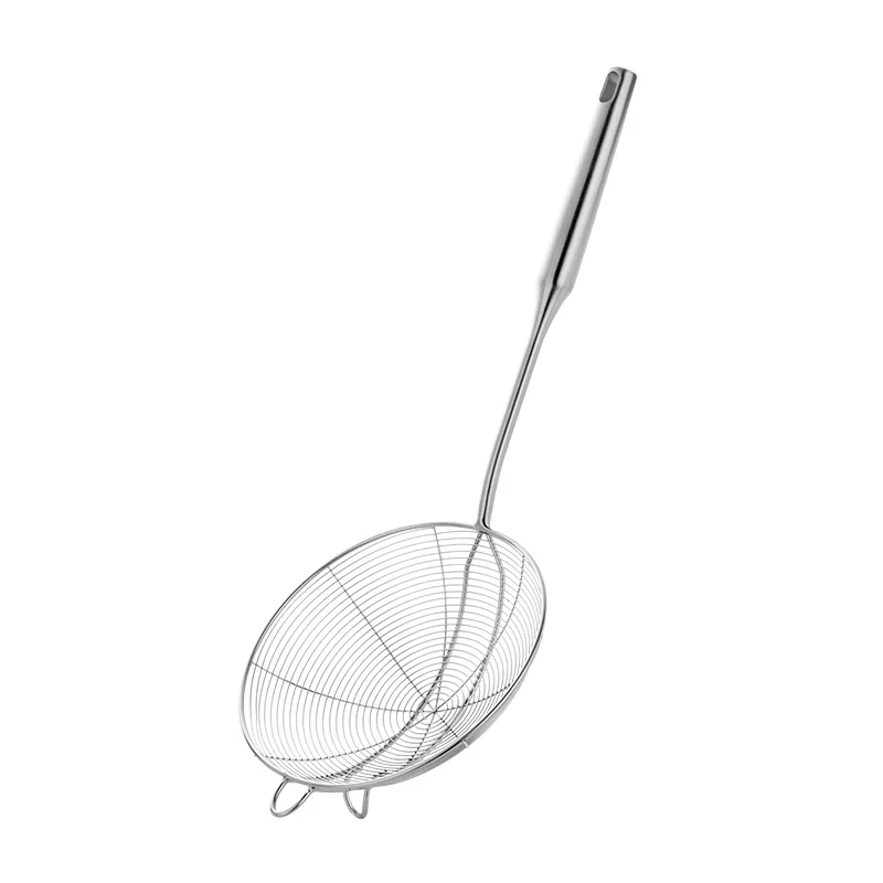- Matériaux Durables : Fabriquée en acier inoxydable 304, la passoire résiste à la corrosion et garantit une utilisation prolongée. Son traitement de polissage miroir mat assure non seulement une finition raffinée mais facilite également le nettoyage.