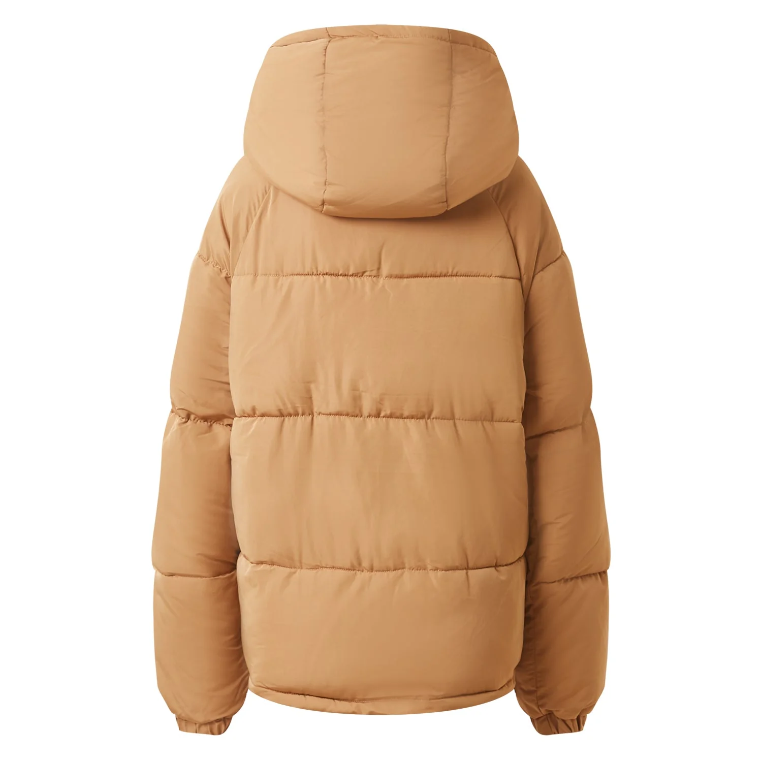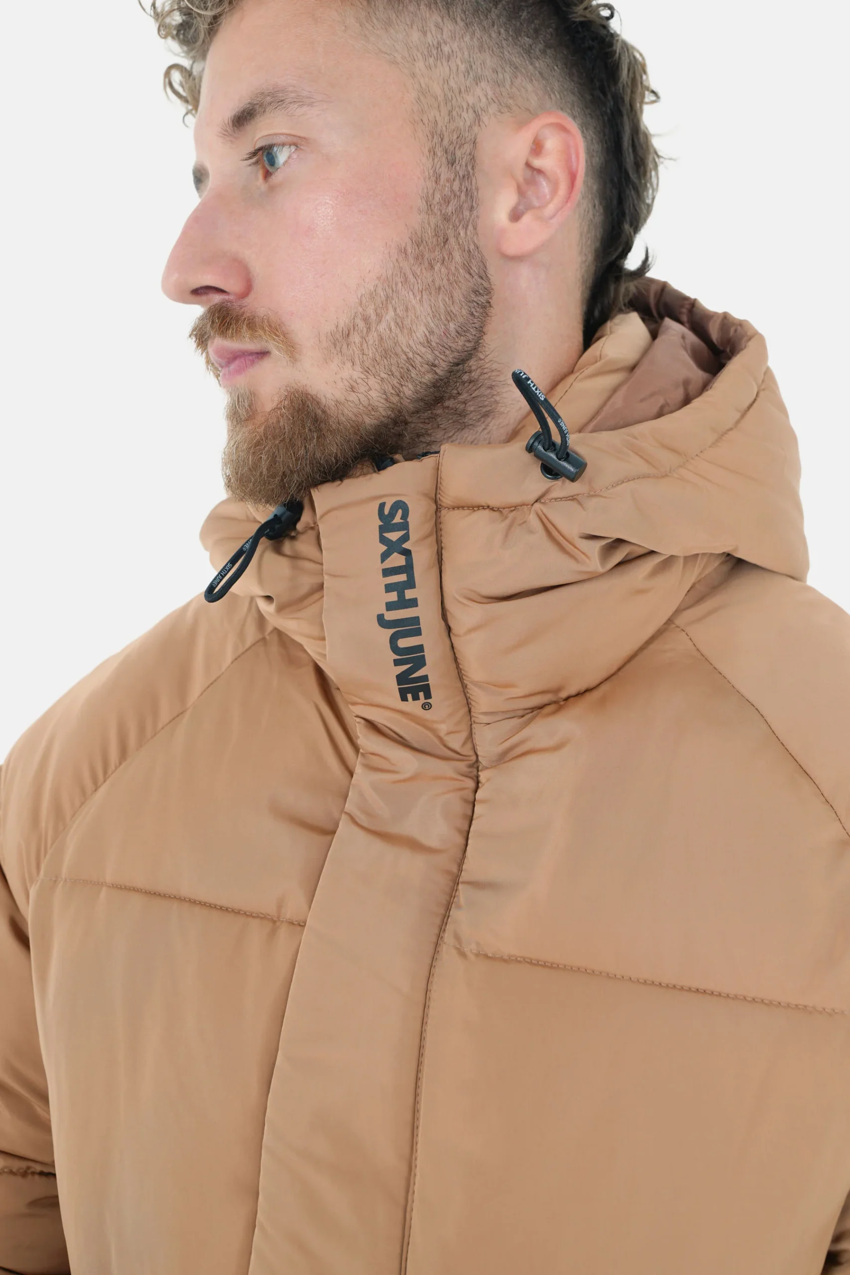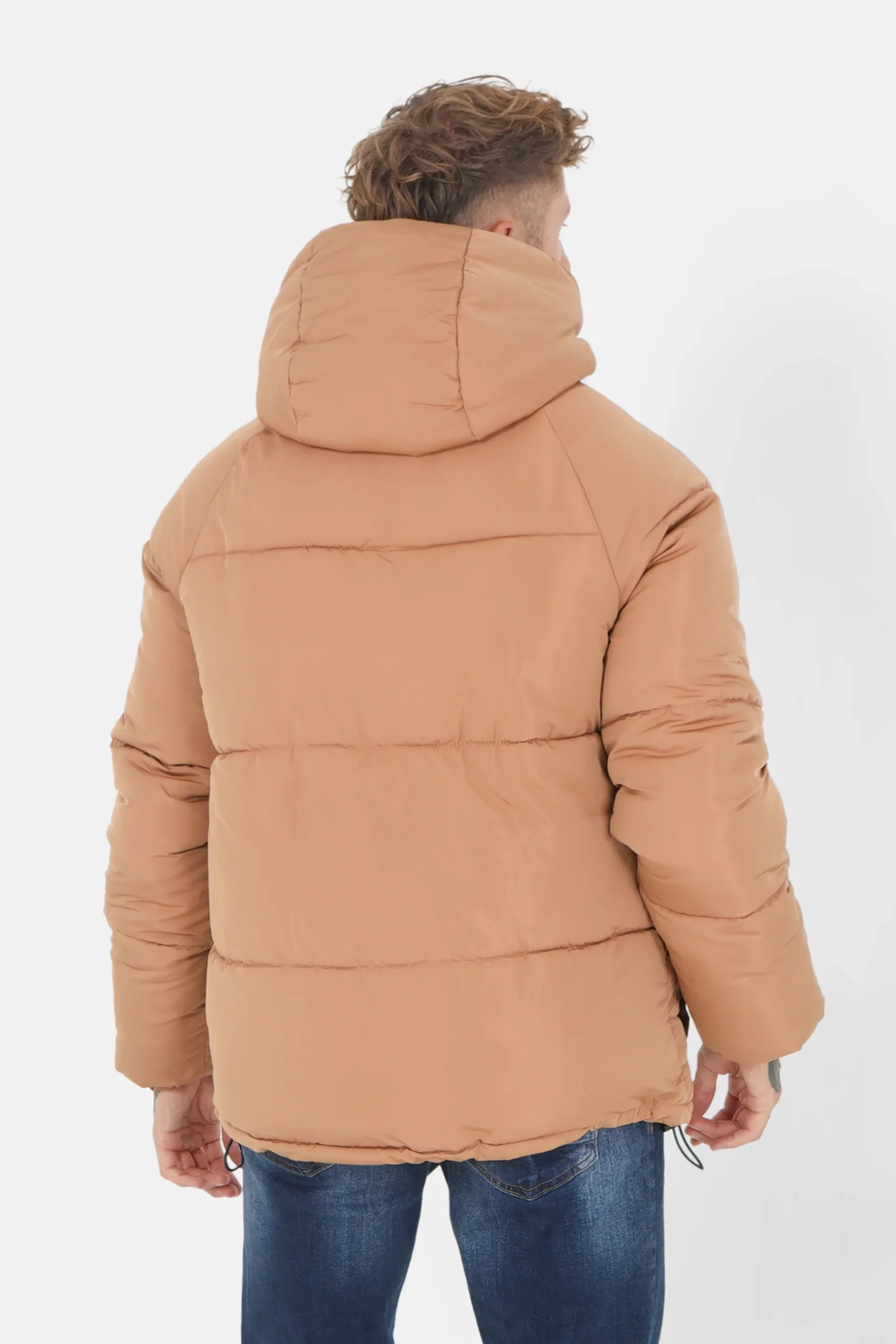 Effet matelassé, col montant avec capuche à cordon de serrage, logo imprimé sur la languette au niveau du col, deux poches avant à rabat et fermeture à aimant, poche intérieur.