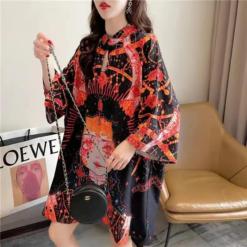 Robe Cheongsam Imprimée Manches Longues : Élégance et Sophistication au Féminin