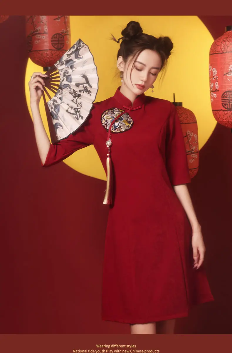 Le design moderne de cette robe reflète un mélange subtil de tradition et de modernité. Sa longueur courte lui confère un look dynamique et jeune, parfait pour afficher votre style unique. Disponibles en plusieurs tailles, allant de S à XXL, chaque femme peut trouver la coupe qui lui convient le mieux.