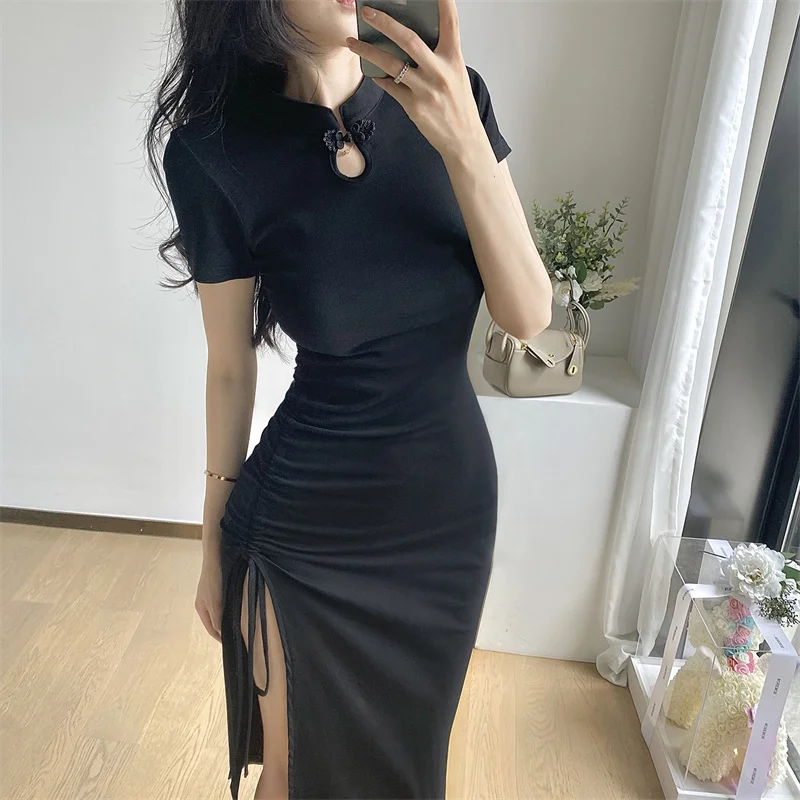Le choix du polyester comme matériau principal assure une légèreté et une élasticité qui épousent parfaitement les courbes du corps. Ce tissu est également très facile à entretenir, ce qui en fait un choix idéal pour les femmes actives. La Robe Chinoise Noire Sans Manches est conçue pour offrir un maximum de confort sans compromettre le style.