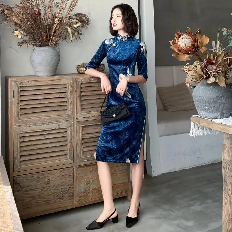 Chaque détail de la Robe Chinoise Rouge Bleu Femme a été pensé pour offrir une expérience de port inégalée. Les motifs élaborés et les couleurs éclatantes font de cette robe une pièce maîtresse de toute garde-robe féminine. La toile utilisée confère à la robe une texture délicate et un tombé parfait, accentuant chaque mouvement avec grâce. De plus, le style traditionnel de la cheongsam, avec ses lignes épurées et ses ornements subtils, est revisité pour s’adapter aux tendances actuelles tout en conservant son essence intemporelle.