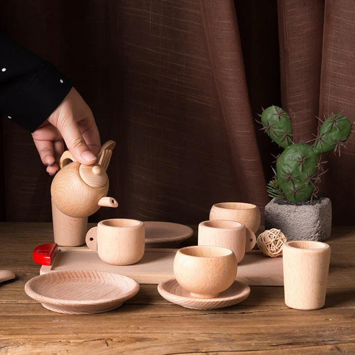 - Un ensemble complet : théière, tasses, soucoupes et accessoires assortis