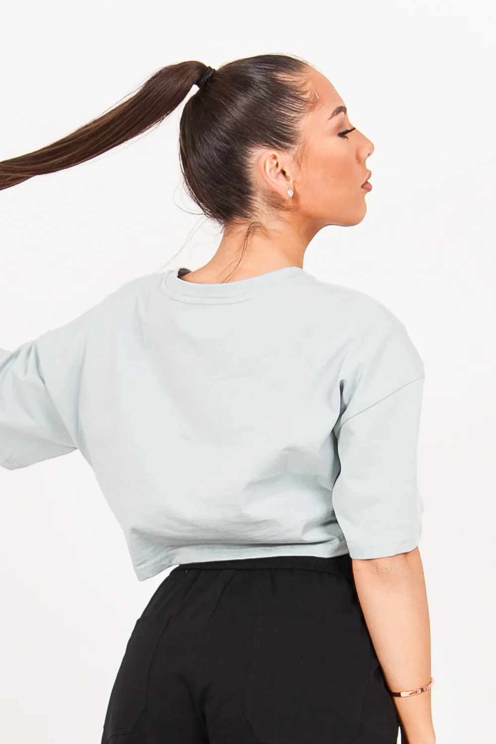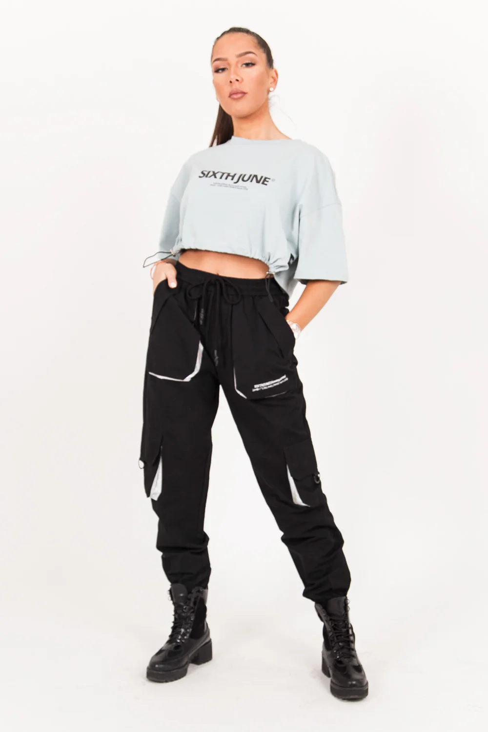 T-shirt manches courtes pour femme de marque Sixth June. Imprimé Sixth June au centre et inscription « Sixth June streetstyle brand » au dessous. Liens de serrage avec élastiques à l’avant. Coupe large et épaules tombantes. Modèle vert.