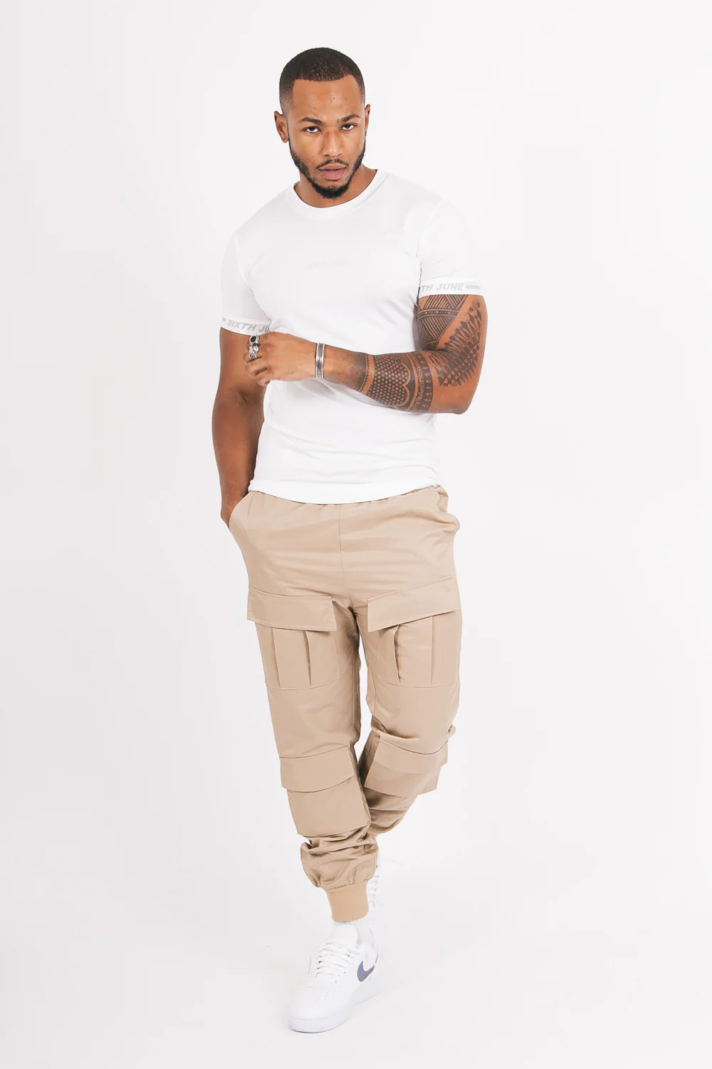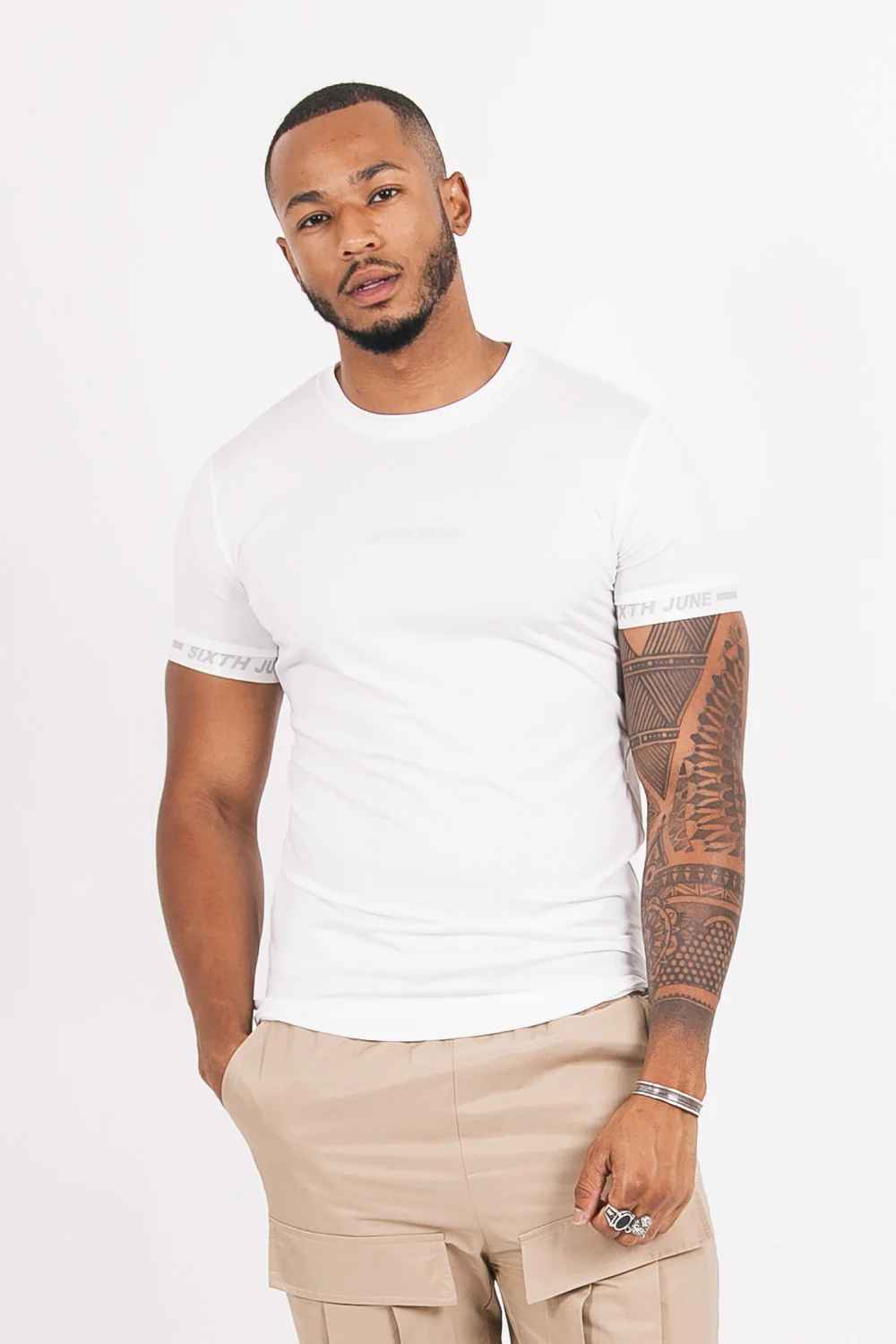 T-shirt à manches courtes pour homme de marque Sixth June. Matière effet maillot de sport, fluide et légère. Logo Sixth June sur la poitrine. Elastiques avec imprimé sur les manches. Coupe ajustée, base arrondie. Modèle blanc.