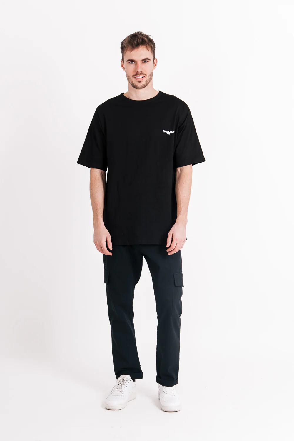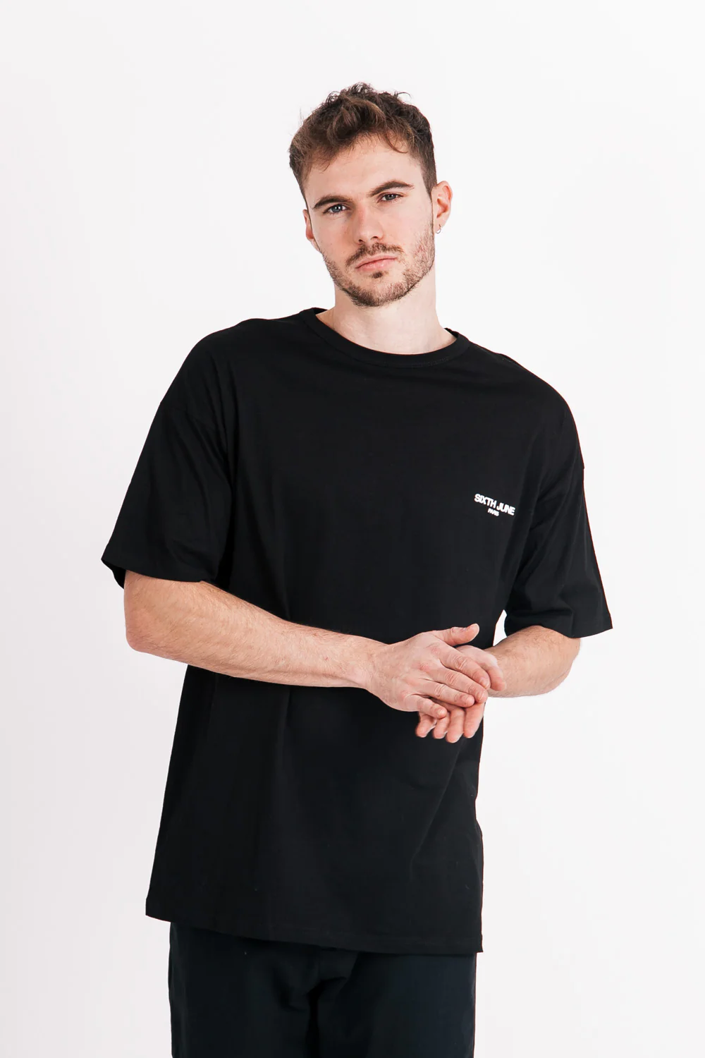 T-shirt à manches courtes pour homme de marque Sixth June. Grand imprimé floral à l’arrière. Sixth June inscrit à l’avant sur la poitrine. Coupe oversize, épaules tombantes. Modèle noir.