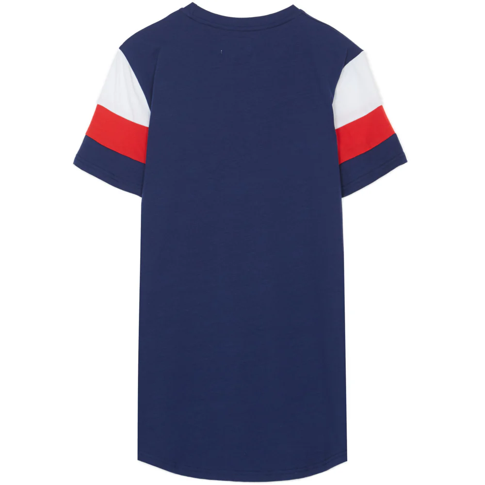 T-shirt Sixth June pour homme avec des manches courtes tricolores. Coupe moulante, « Sixth June » imprimé à l’avant, col rond et base légèrement arrondie. Modèle bleu marine, rouge et blanc.