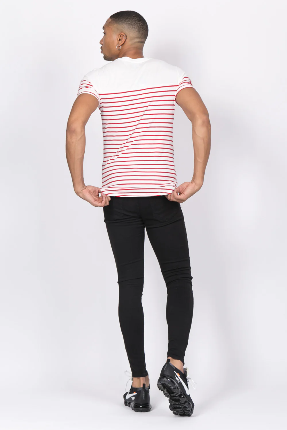 T-shirt marinière patchs rock blanc rouge