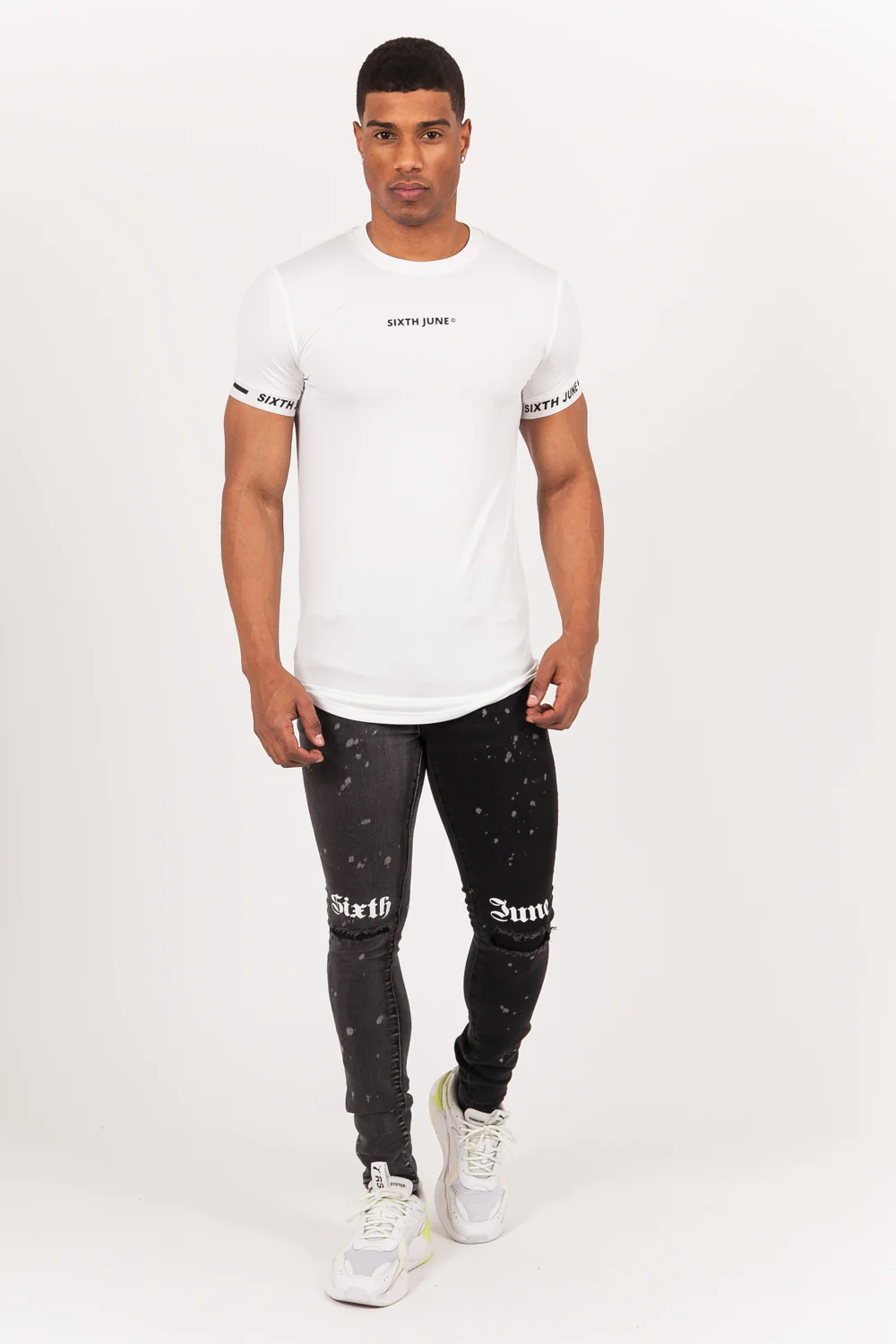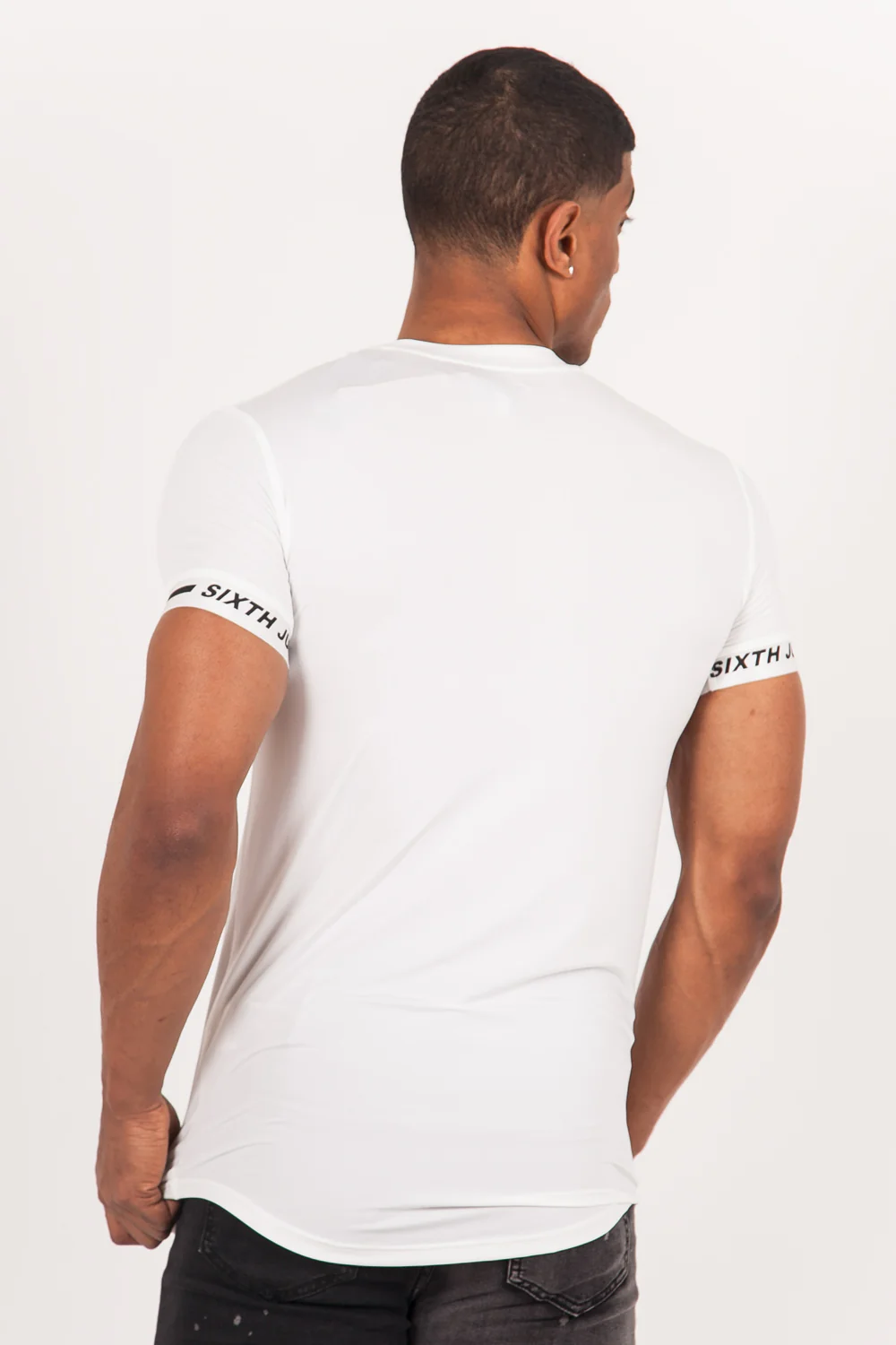 T-shirt à manches courtes pour homme de marque Sixth June. Logo Sixth June au centre et aux extrémités des manches. Matière effet lycra. Coupe très moulante. Modèle blanc.