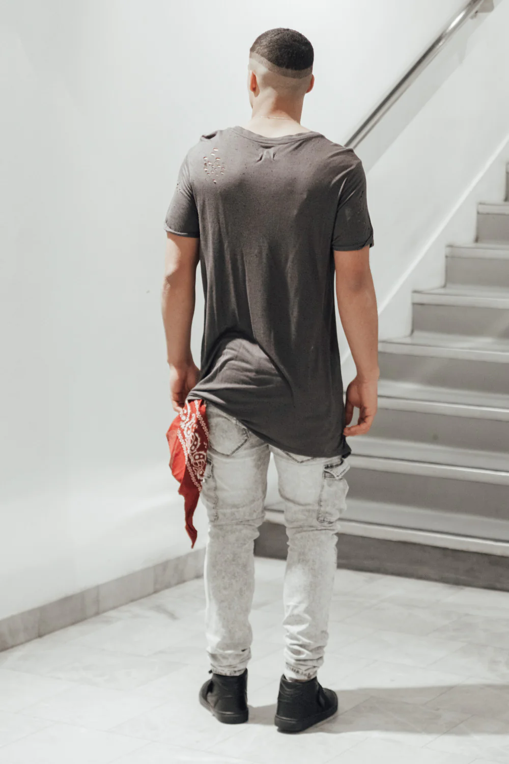 T-shirt moucheté gris foncé Sixth June Homme. Destroy à l’avant et à l’arrière. Coupe oversize.