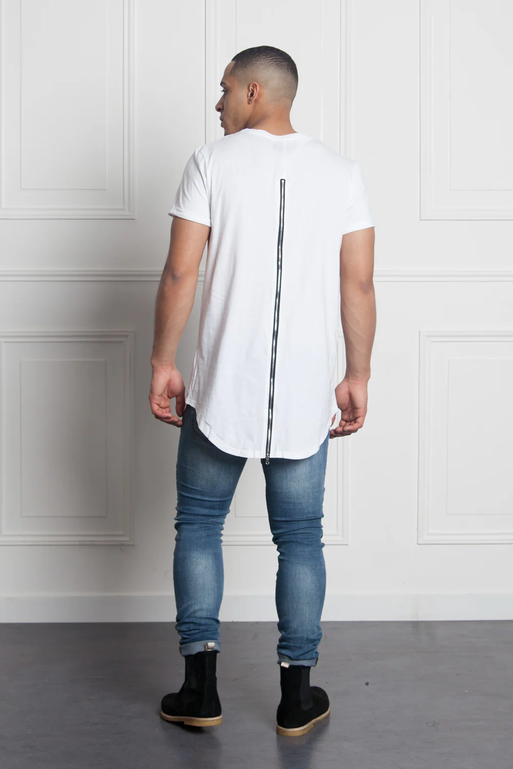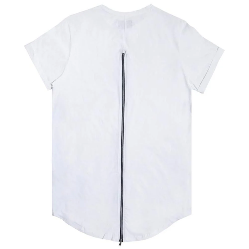 T-shirt uni blanc Sixth June. Coupe oversize et col rond. Zip le long du dos.