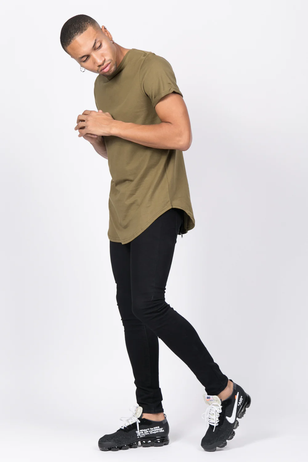 T-shirt kaki Sixth June Homme. Zip dans le dos. Coupe oversize.