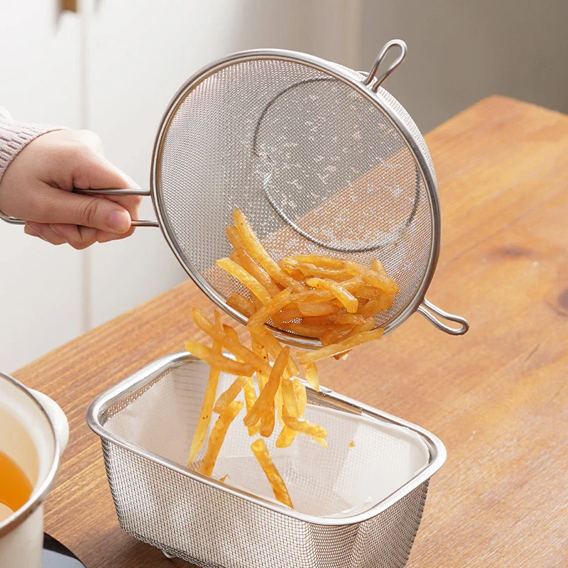 La polyvalence du Tamis Chinois Grand Acier en fait un indispensable de votre cuisine. À travers les différentes étapes de la préparation des aliments, cet outil pourra se révéler d’une grande aide, que ce soit pour filtrer, tamiser ou égoutter. Voici quelques-unes de ses principales utilisations :