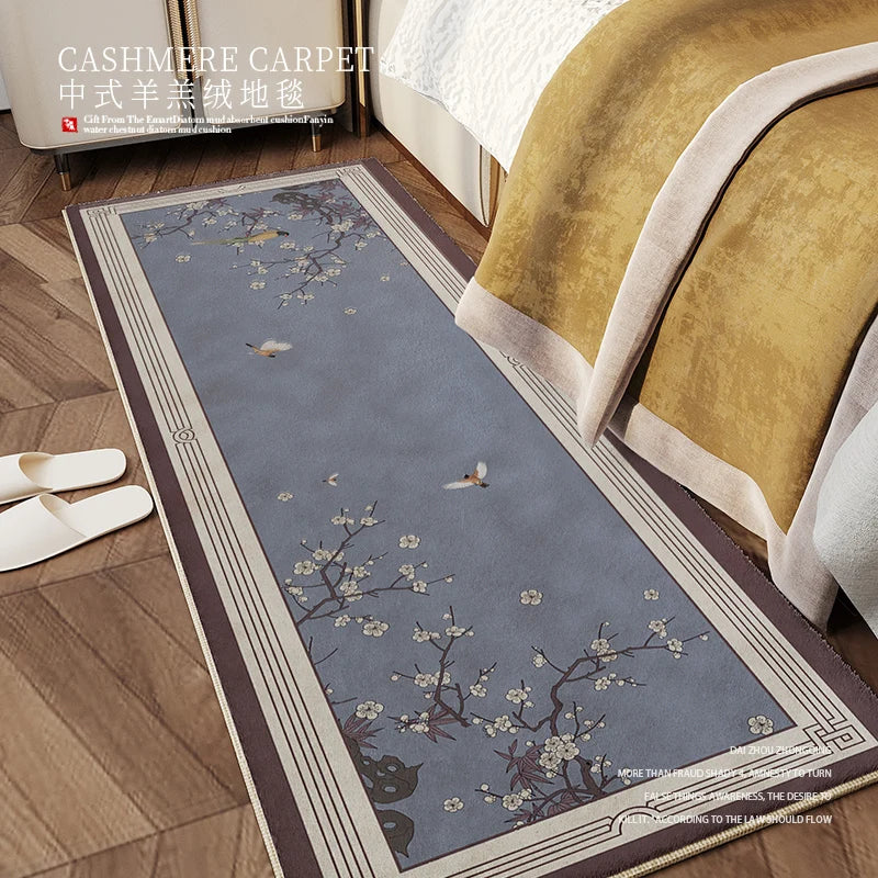Dans une chambre, le Tapis Chinois Rose transforme l’atmosphère en un havre de paix. Positionné sous le lit, il offre un confort inestimable au moment de se lever le matin. Les nuances de rose créent une ambiance romantique, parfaite pour des nuits de repos et de détente. Les jeux de lumière font ressortir les motifs scéniques, ajoutant une dimension artistique supplémentaire.
