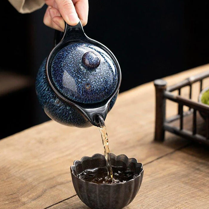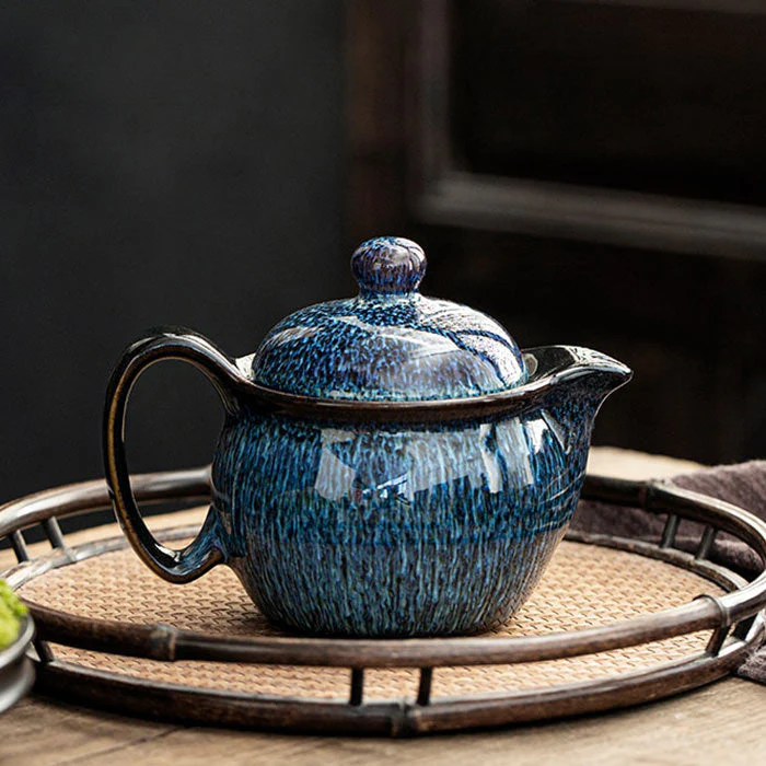 Vous êtes sûrement tenté par une nouvelle théière, mais qu’est-ce qui rend cette version chinoise en porcelaine si unique ? Tout commence par la matière : la porcelaine. Fine, mais robuste, elle garde la chaleur juste ce qu’il faut, offrant une infusion constante et agréable, sans surchauffer votre boisson. En plus, elle ajoute un charme indéniable à votre table avec ses nuances subtiles de bleu profond mêlées à un noir élégant.