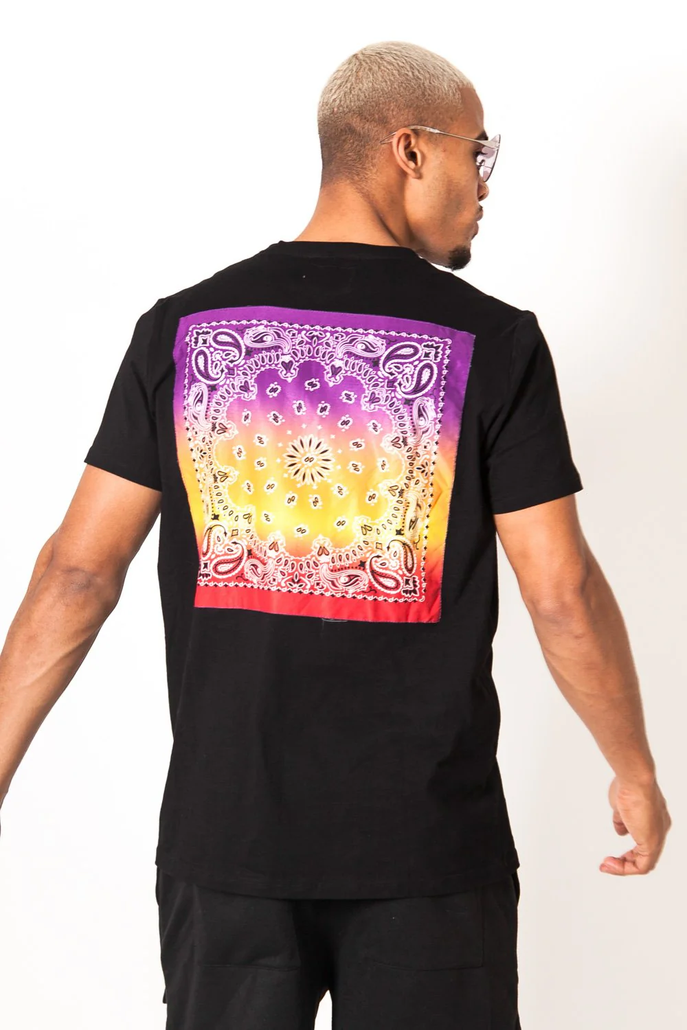 Tshirt imprimé bandana multicolore noir