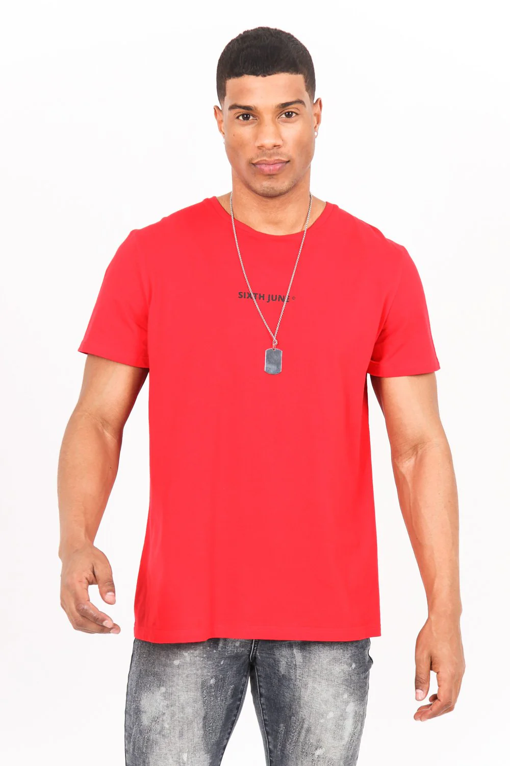 Tshirt manches courtes pour homme de marque Sixth June. Grand imprimé bandana a l’arrière. Logo Sixth June sur la poitrine. Coupe classique. Modèle rouge avec imprimé multicolore.