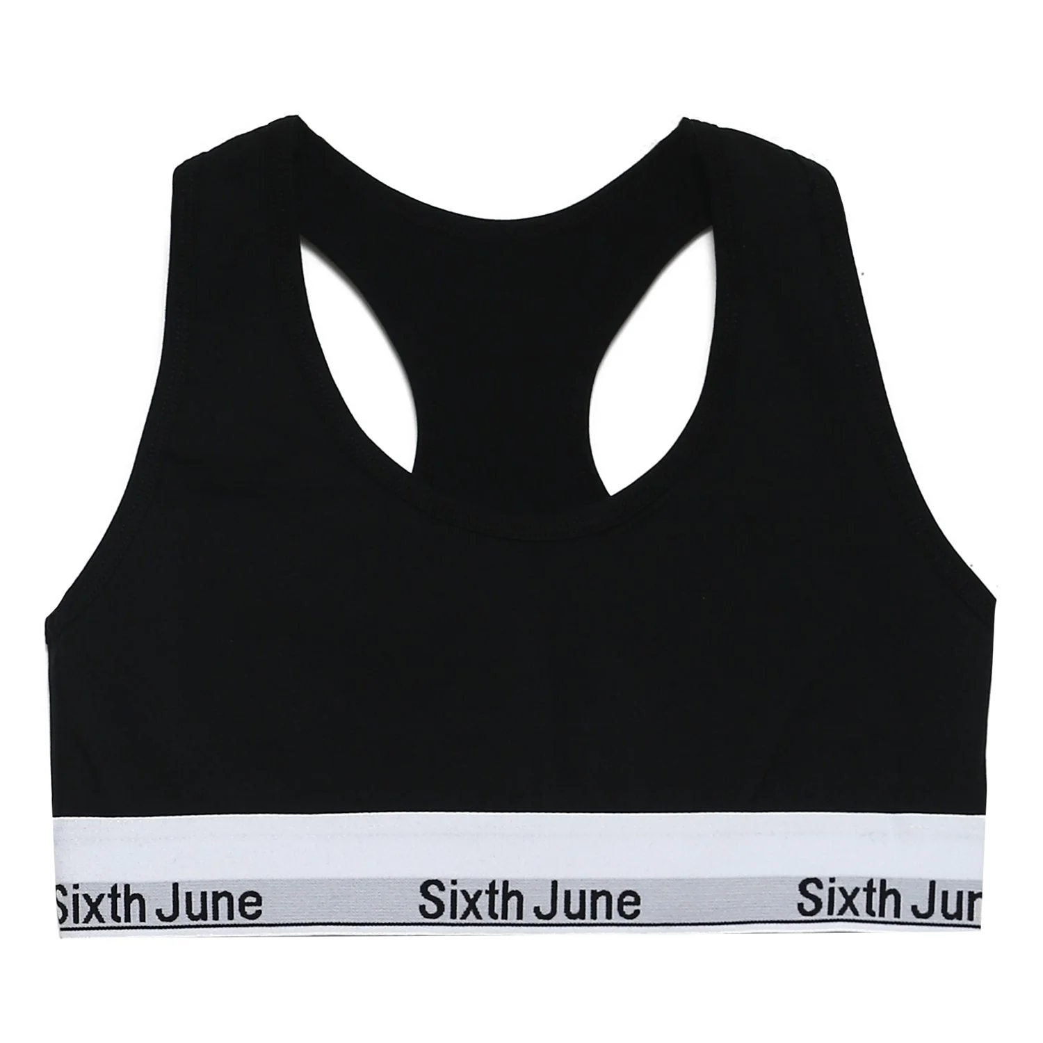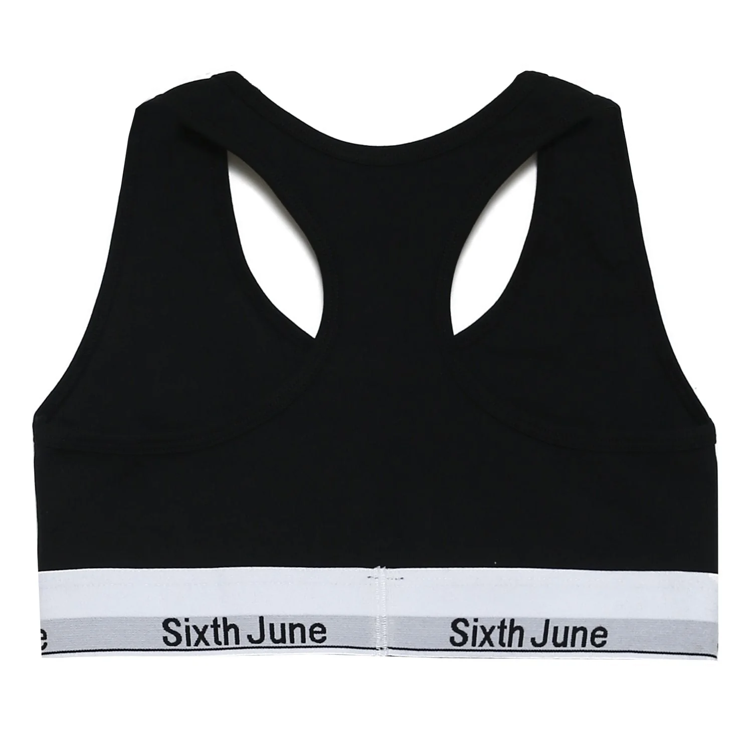 Brassière pour femme de marque Sixth June. Bande élastique avec inscription Sixth June tissée, dos croisé.