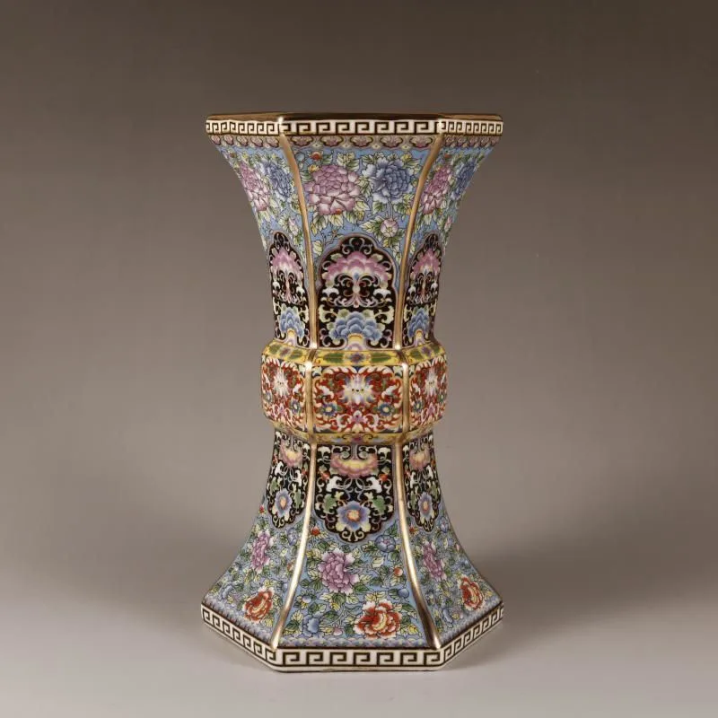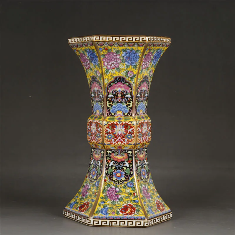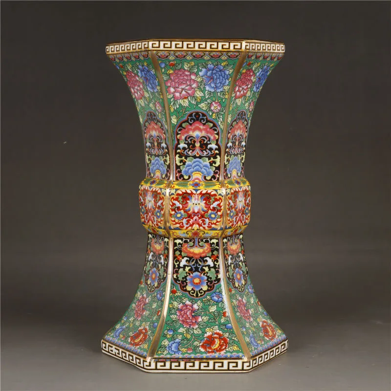 Vase Chinois Ancien Hexagonal Émaillé