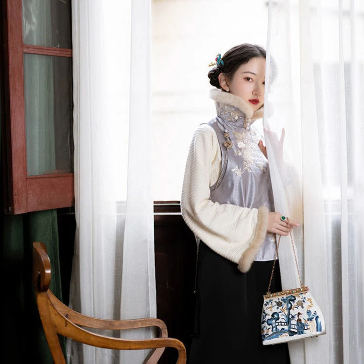 Vous cherchez une veste chinoise hiver qui combine charme, confort et originalité ? Ne cherchez plus ! Cette pièce unique est parfaite pour réchauffer vos journées froides tout en restant stylée. Avec sa coupe sans manches et sa caresse de fourrure, elle s’impose comme un must-have pour celles qui veulent s’éloigner des manteaux classiques sans renoncer à la chaleur.